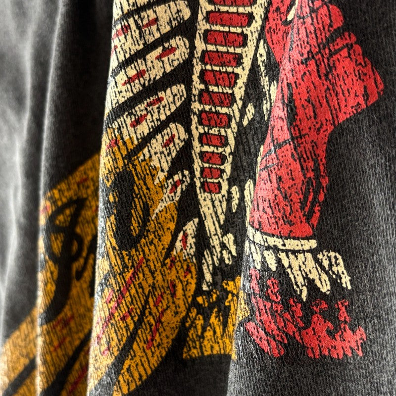 ややゆとりのあるシルエットに、ヘビーすぎないちょうど良い厚みのコットン100%。素肌でも気持ちよく、重ね着でももたつかない。背中に入ったグラフィックは、ただ目立つだけじゃなく、ブランドの背景を語るアイコンとして機能します。