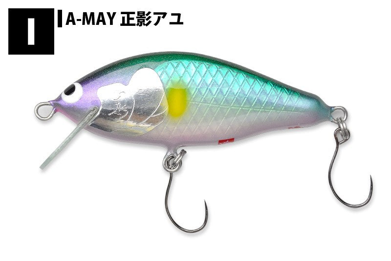 ●カラー:A-MG モーニンググレー、A-OK オイカワ、A-PKO パーマーク金黒オレンジベリー、A-PCH パーマーク、A-ST サケ稚魚、A-GYM グリーンヤマメ、A-MWK 正影ワカサギ、A-IB アイスブルー、A-MAY 正影アユ、A-UG ウグイ、A-MGP モーニングクレーパーマーク、A-IBP アイスブルーパーマーク