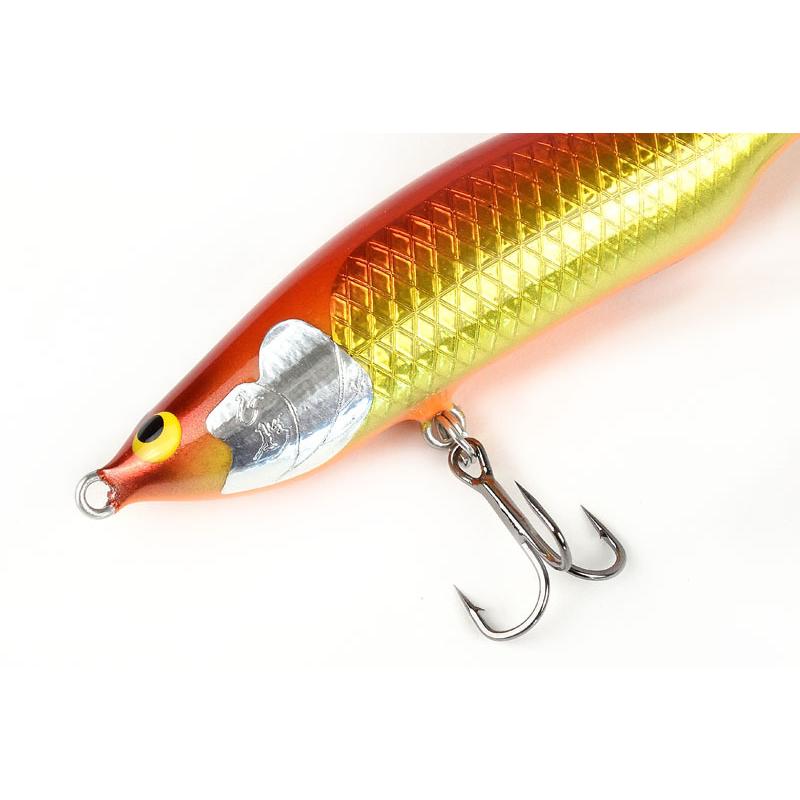 スローリトリーブでS字蛇行し、高速リトリーブでも水面から飛び出しにくい。軽いジャーキングでは両サイドに30cm位スライドし、トゥイッチでは上下ひっくり返るほどのトリッキーな動きでベイトフィッシュが瀕死の状態を演出。ターゲットはレイクのトラウト、海サクラ、海アメ、カラフトマスなど。使い慣れることでリザーバーでも活躍。