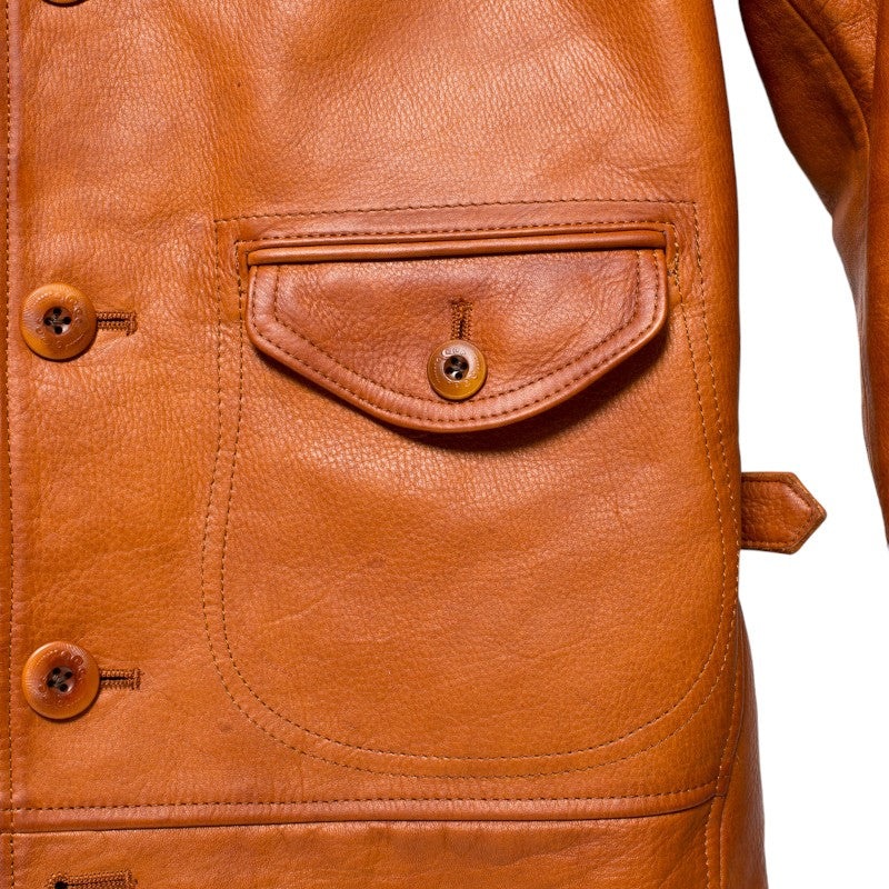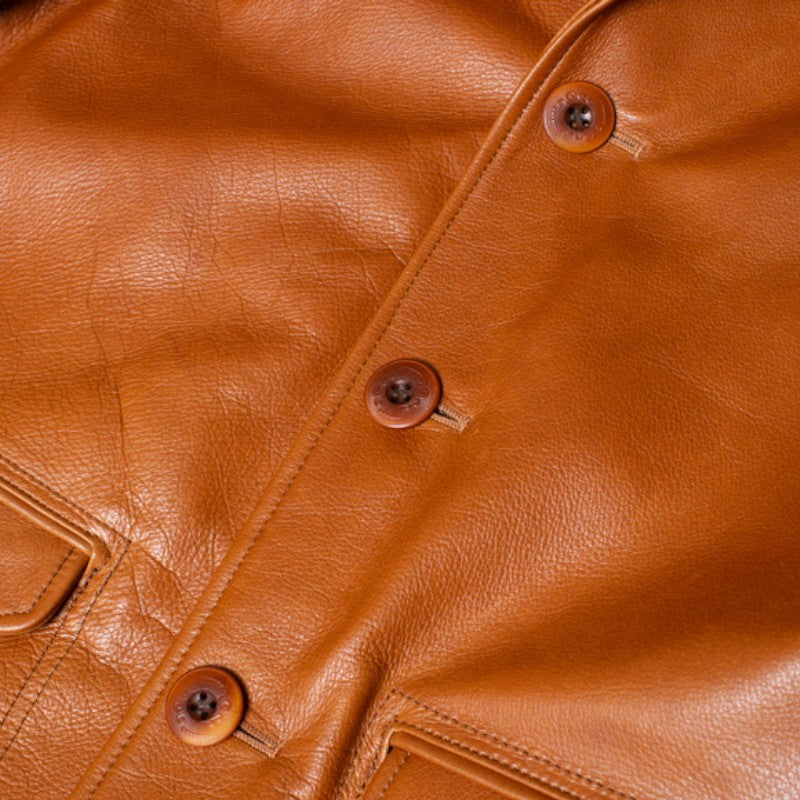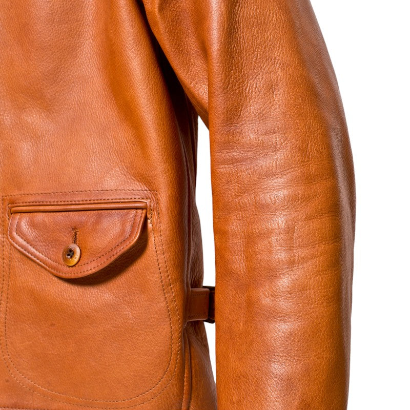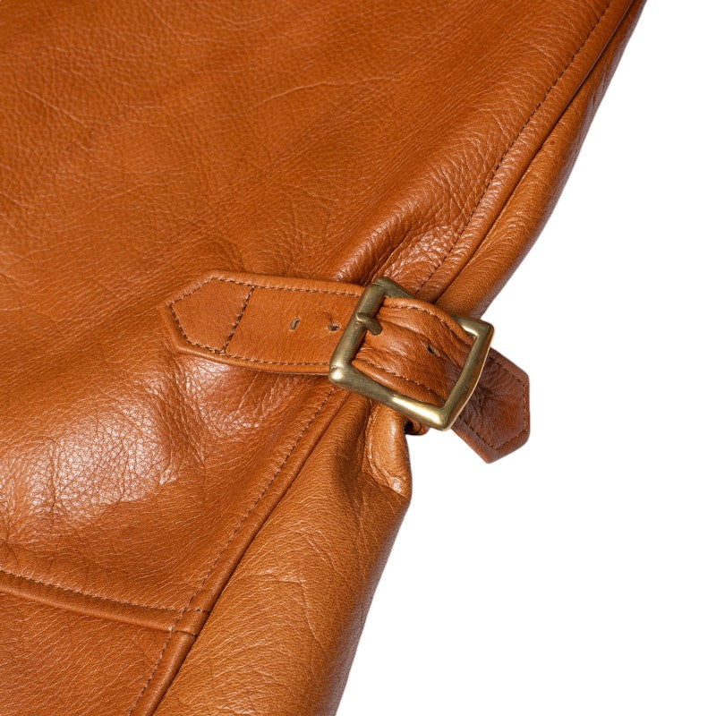 しっかりとした厚さを有しながらも柔らかさもあるこだわりのステアハイド。 アメリカ・テキサス州産の厳選されたレザーを世界に誇る日本のタンナーで鞣しています。 原皮の風合いを大切にし、天然のレザー特有の荒々しさをあえて残している為、1点1点表情が違います。 着用を重ねていくことで風合いを増し、着用する人のライフスタイルを皺に刻んでいきます。