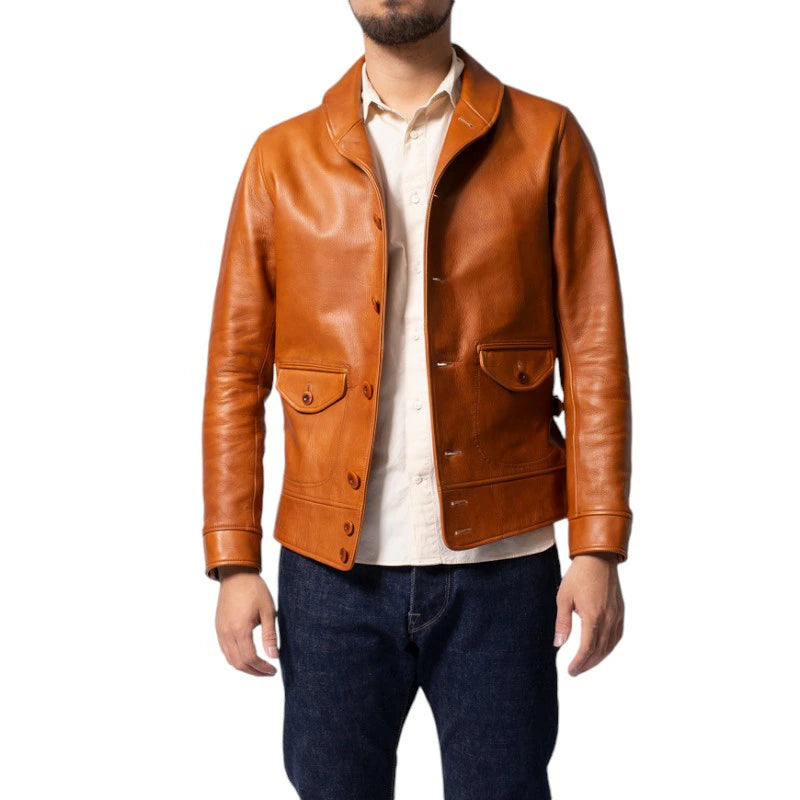 無骨な印象のレザージャケットですが、上品な雰囲気でお楽しみいただけます。 スウェットなどと合わせて男らしく合わせても良し、シャツとネクタイでドレスアップしても良しの一着です。