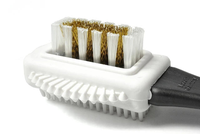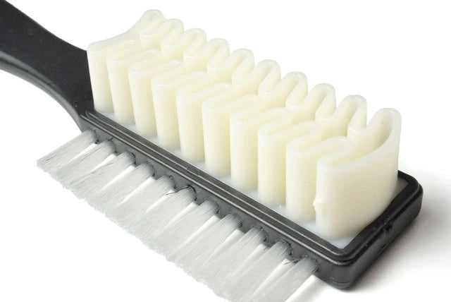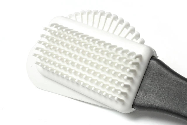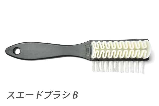 【スエードブラシB】 ・サイドのブラシは毛足に入り込んだドロや寝てしまった毛足を整えるのに最適な硬さになっております。(やや硬め) ■使用方法 【スエードブラシC】 ・上のヘラ部分のブラシで隙間のホコリをとってください。 ※黒色や濃色の靴に使用のブラシは淡色や白革の靴に使用しないで下さい。 |