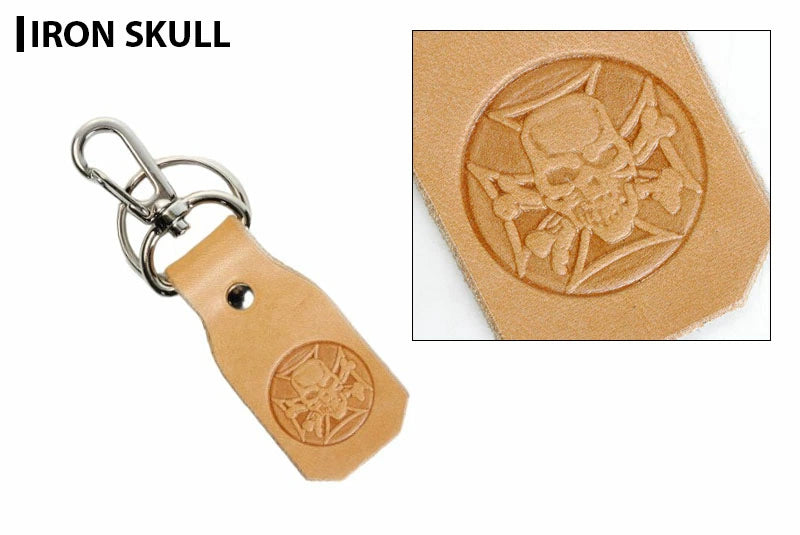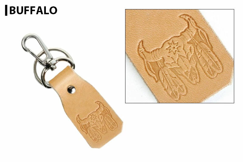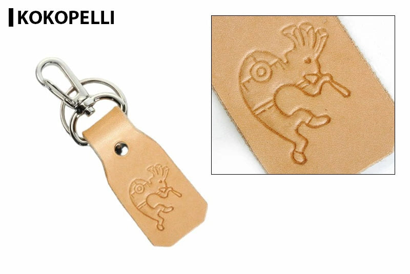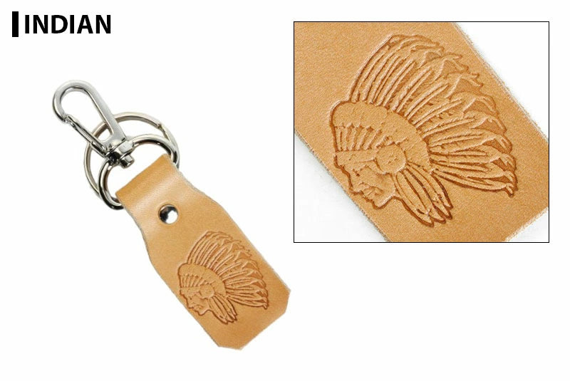 ツーリングレザーにスタンピングを施したキーホルダー。