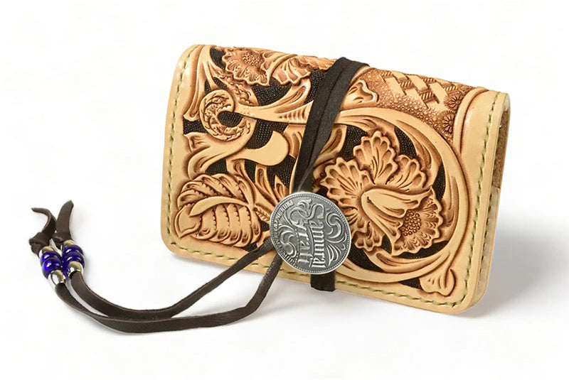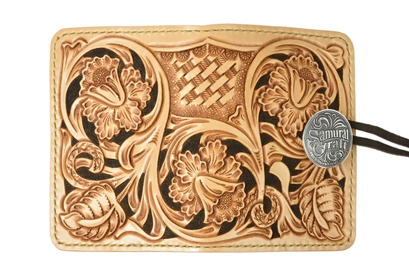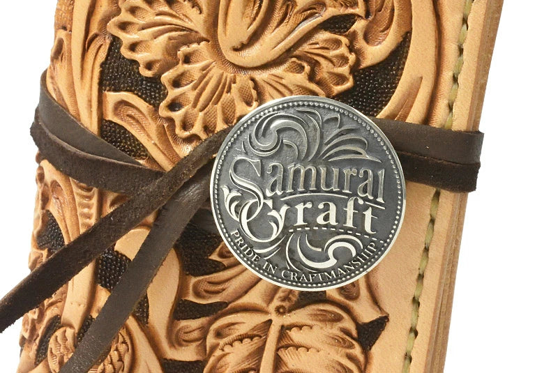 サムライクラフト システム手帳カバー ミニ5穴 バインダー クラウゼ社 M5 シェリダンスタイルカービング コンチョ付き