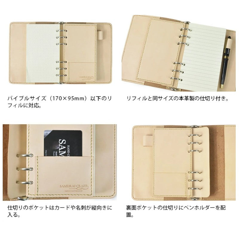 サムライクラフト システム手帳 クラウゼ社 バインダー バイブルサイズ B6 シェリダンスタイルカービング 黒染