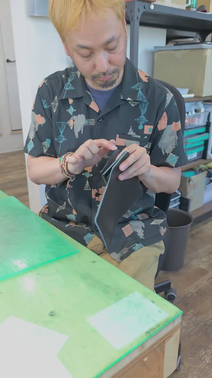 ユーズド風加工が施されているため、全体的に柔らかく、よりシボ感が強い仕上がりになっております。また、使われている革に傷のように見える部分やシワが目立つことがありますが、これは牛が生きている時にできた天然の傷やシワによるものですので、品質には問題ありません。ご了承の上お買い求めください。