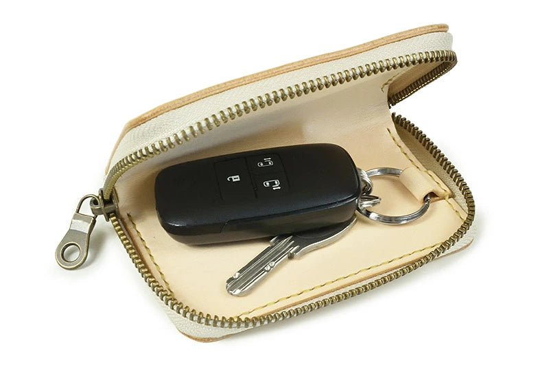 ファスナーを閉じれば本体から鍵がはみ出すこともなく持ち歩きにも安心です。