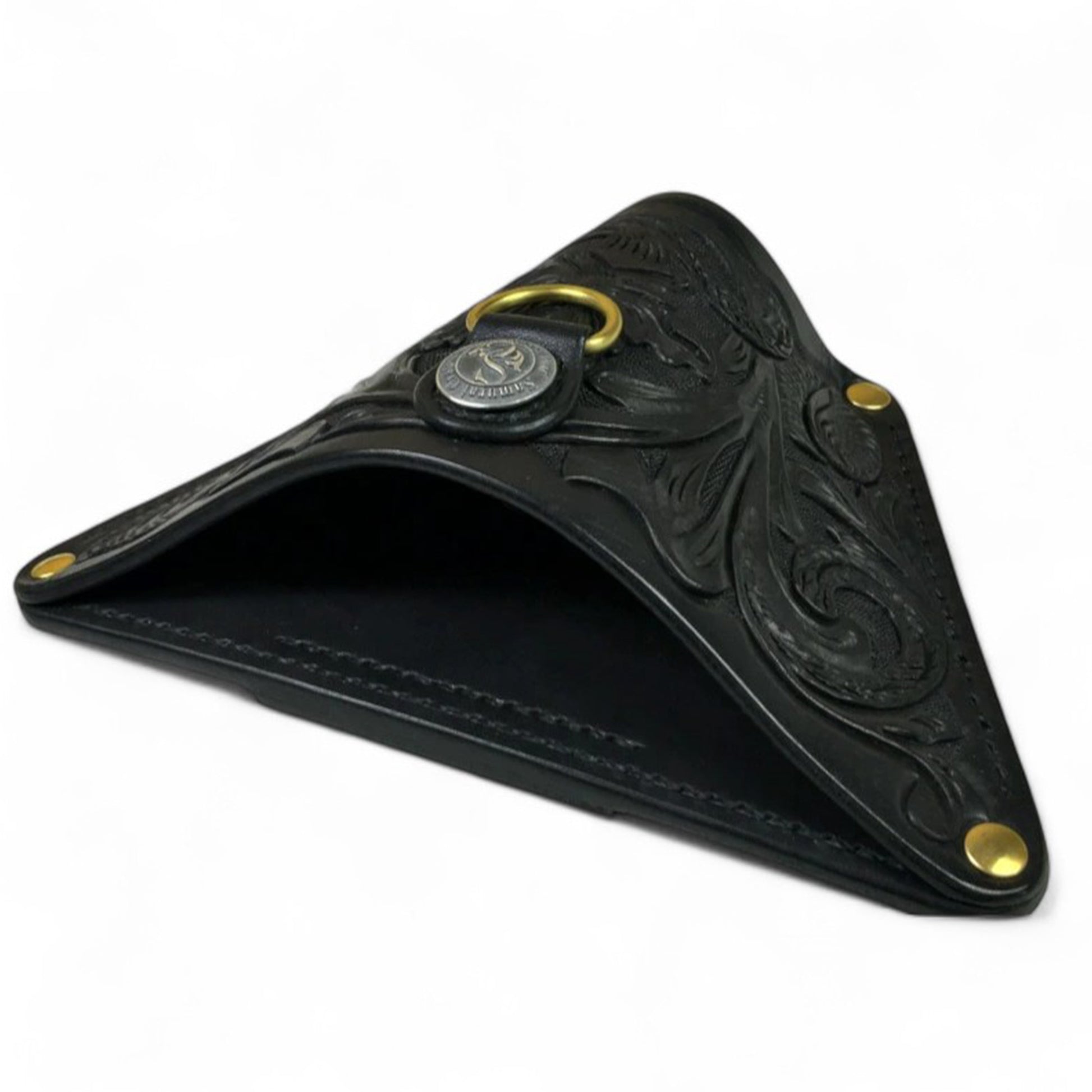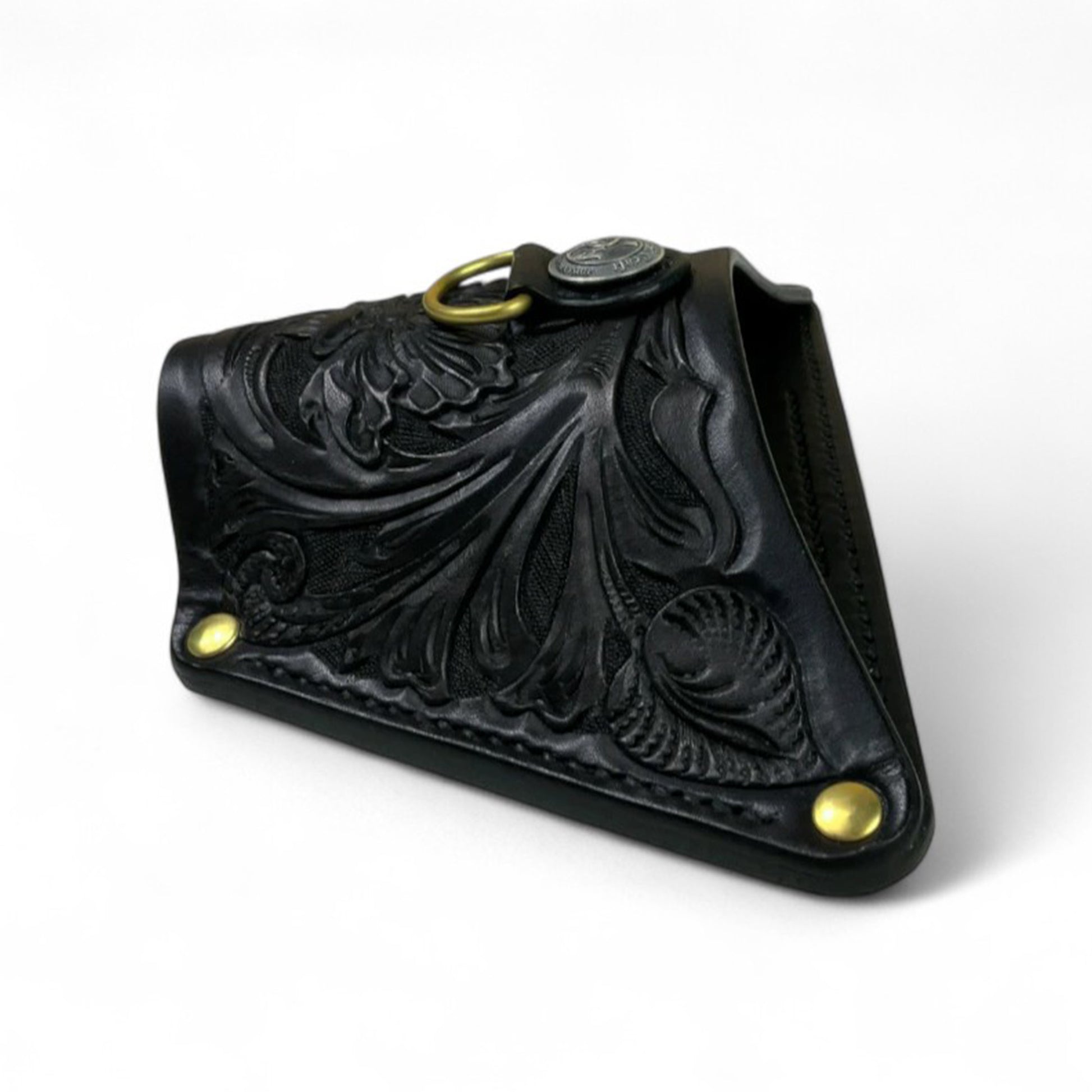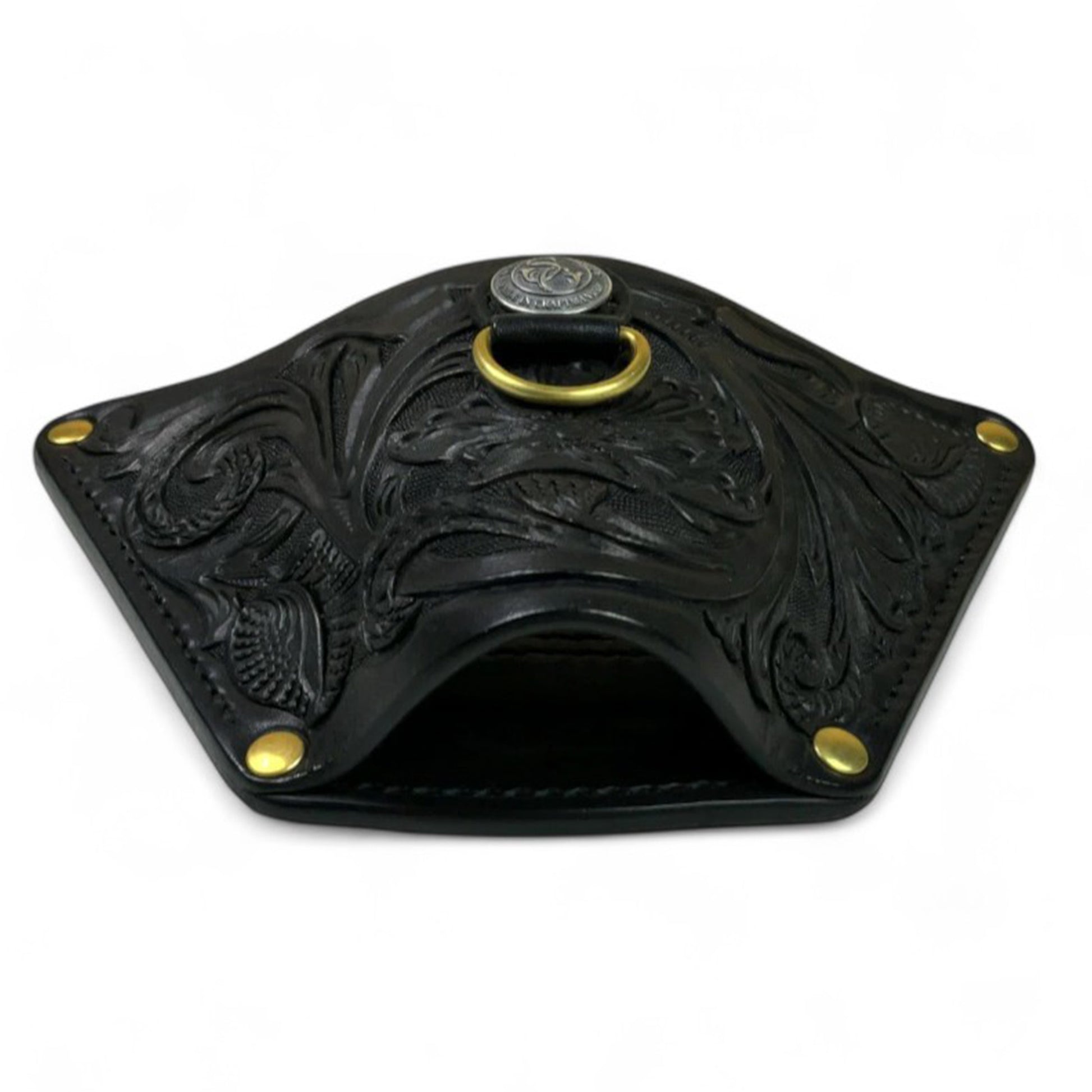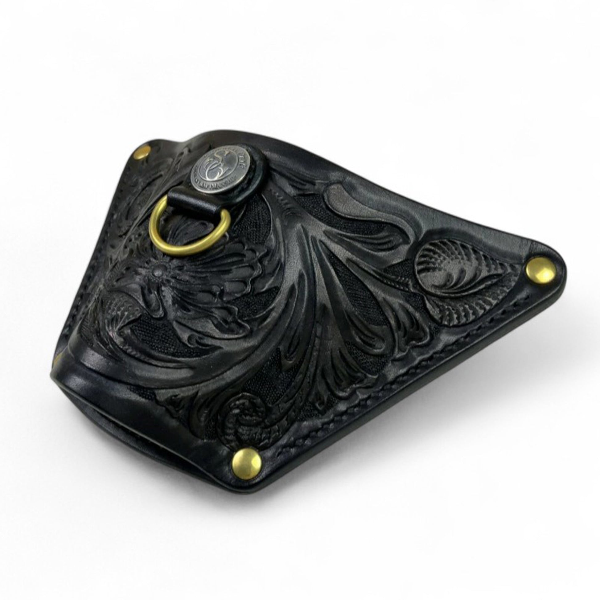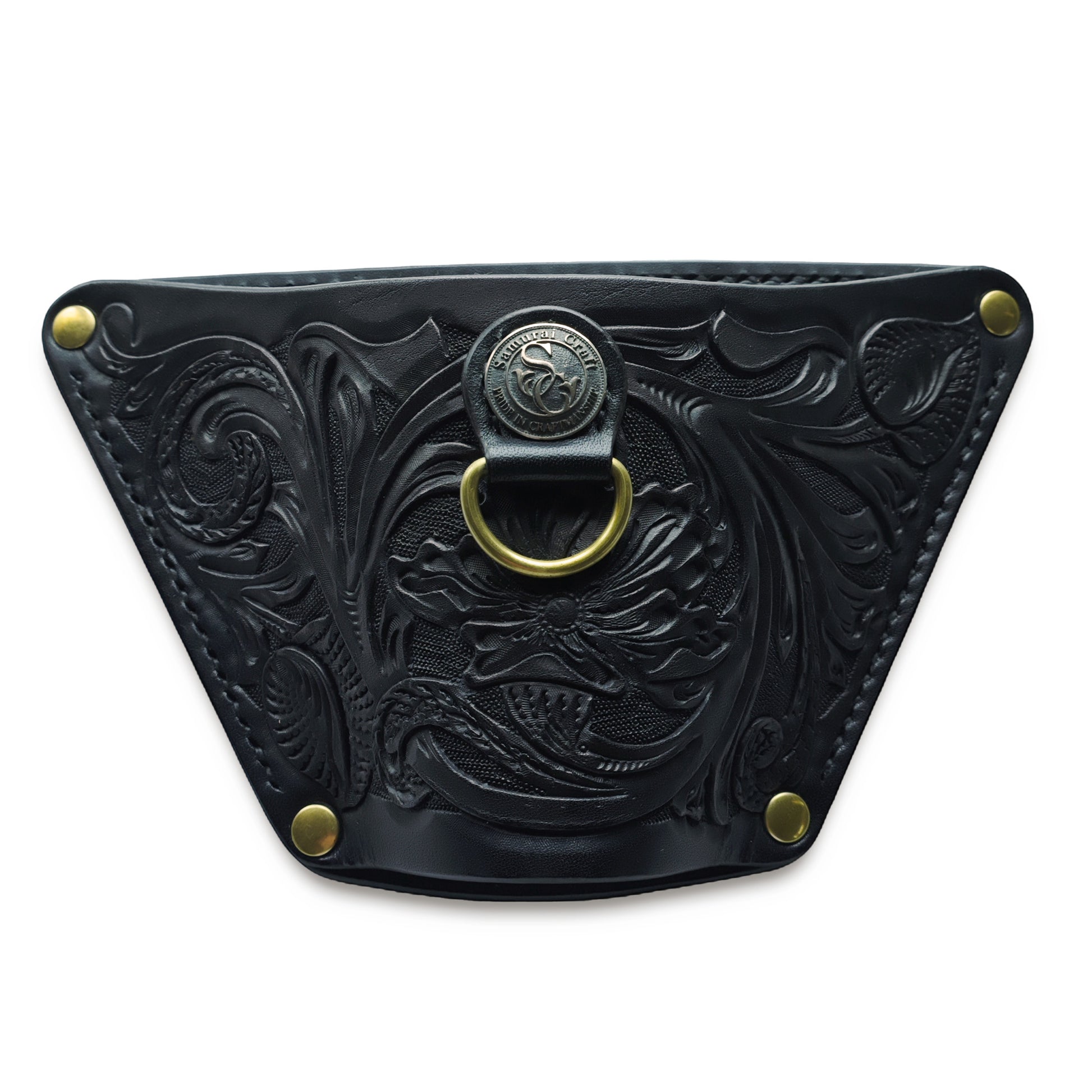 This holster is specifically designed for carrying fishing landing nets and is conveniently attached to your belt, providing comfortable waist-level storage. Built from thick, durable leather, it maintains its shape and resists deformation even with frequent use. Made from premium tannin-tanned tooling leather, it develops an attractive patina with age, allowing you to fully appreciate Samurai Craft’s exquisite craftsmanship and distinctive style. The detailed Sheridan-style carving adds both depth and luxurious elegance. The sturdy front-mounted D-ring allows for secure attachment via a leash cord, preventing accidental loss.