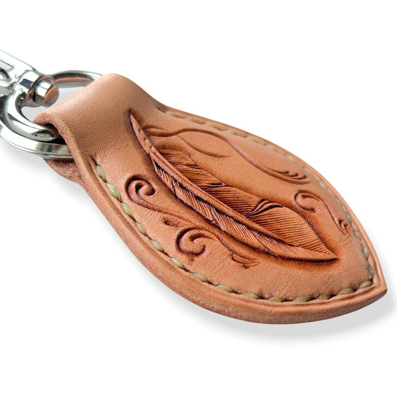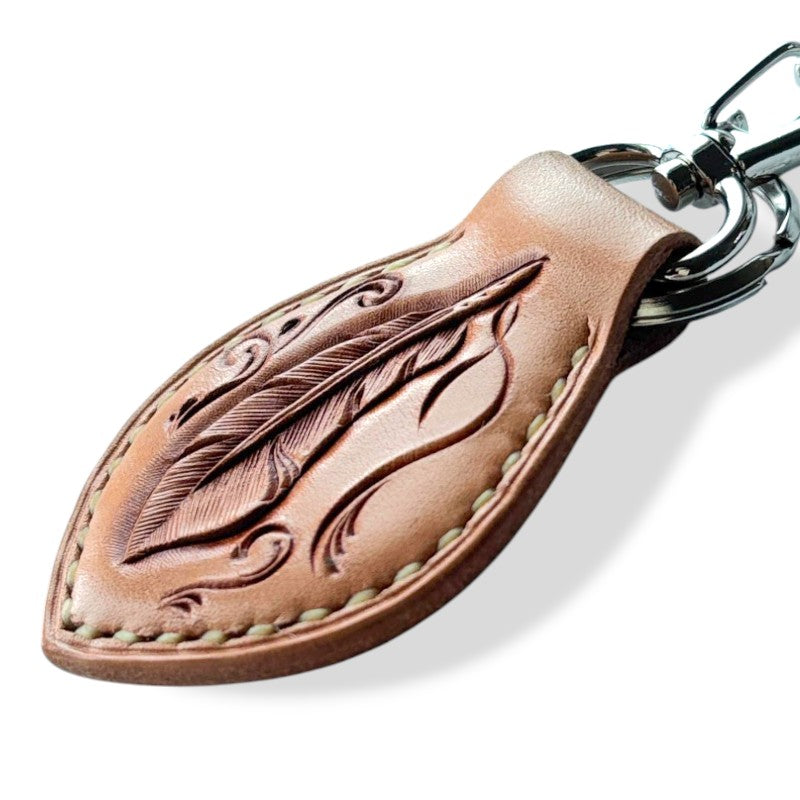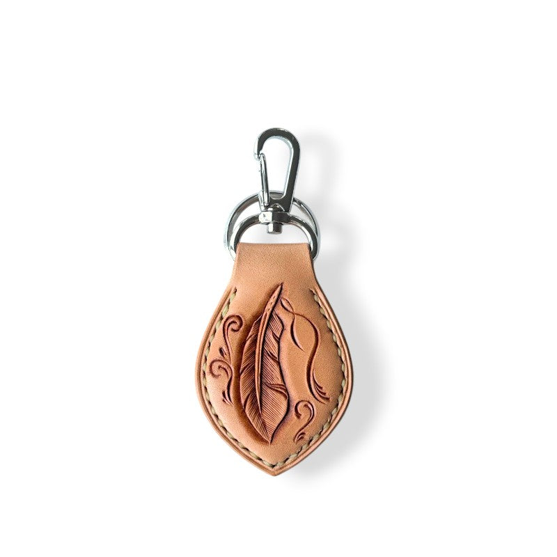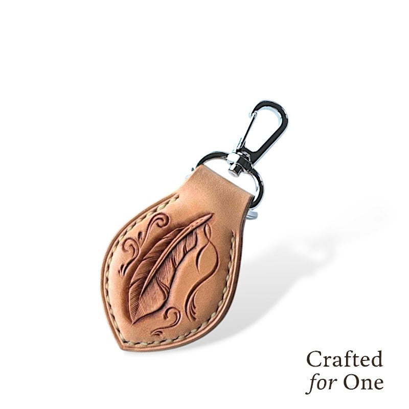 Introducing "Hanekizami", a one-of-a-kind leather keyring carved with a feather motif.