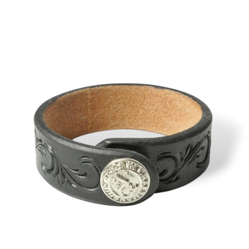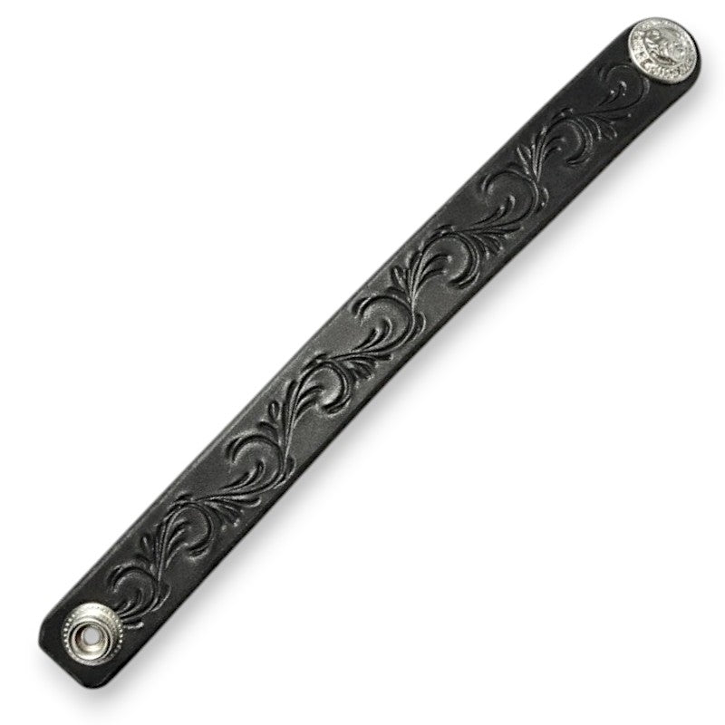 サムライクラフト レザーブレスレット 唐草カットワーク ブラック