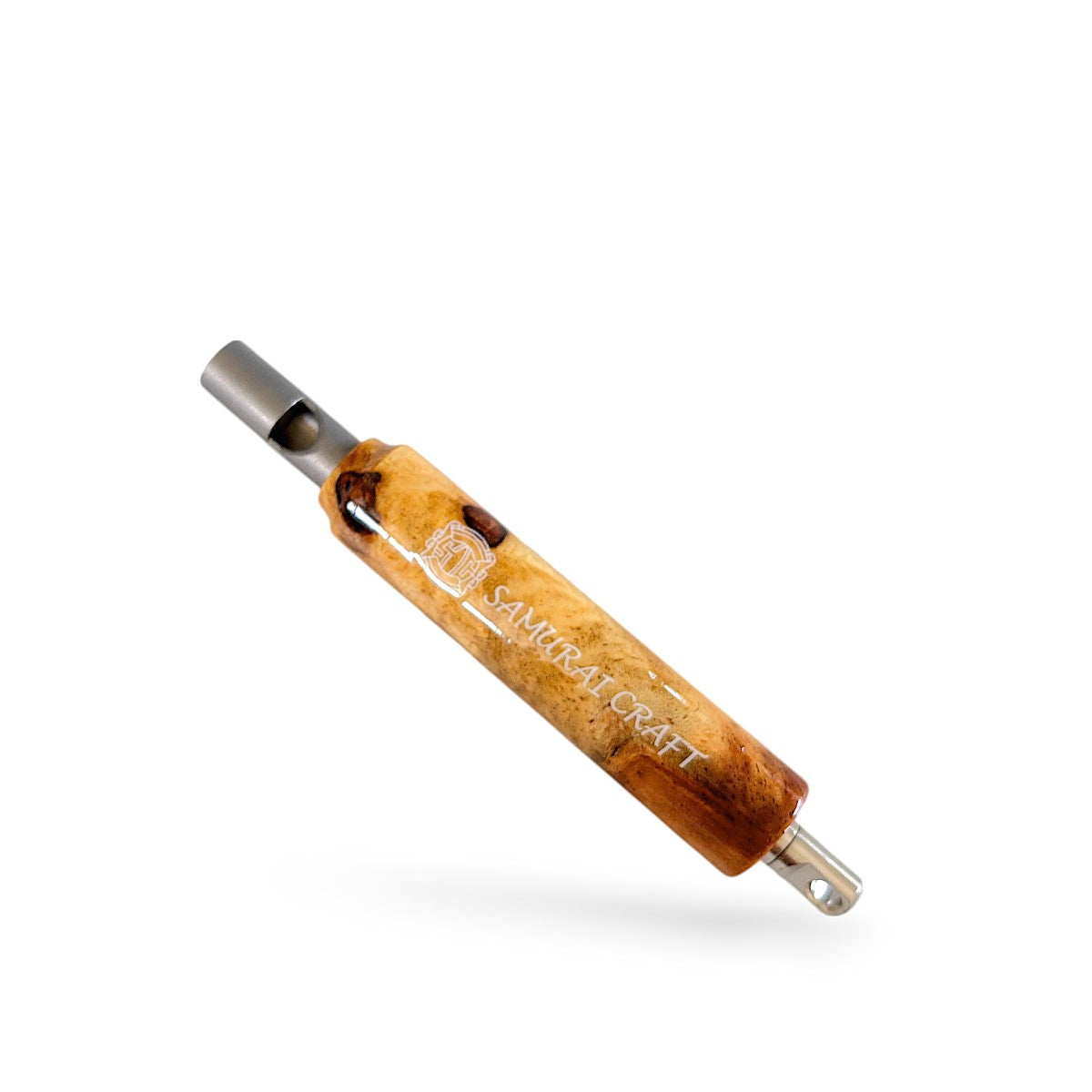 Each whistle has a unique wood grain and color, and the Karin wood develops richer character with use. The titanium component is highly resistant to scratches and discoloration, ensuring lasting durability.