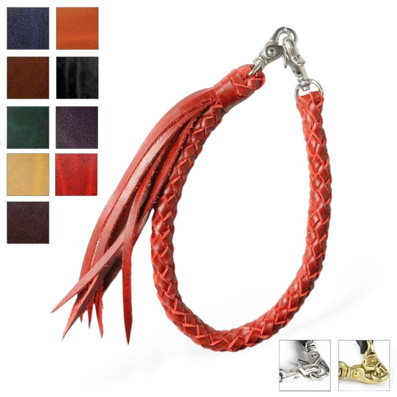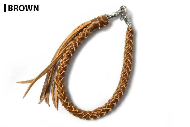 This 8-strand braided wallet chain from Samurai Craft is crafted from luxurious Rugato shoulder leather produced by the renowned Belgian tannery Tannerie Masure.