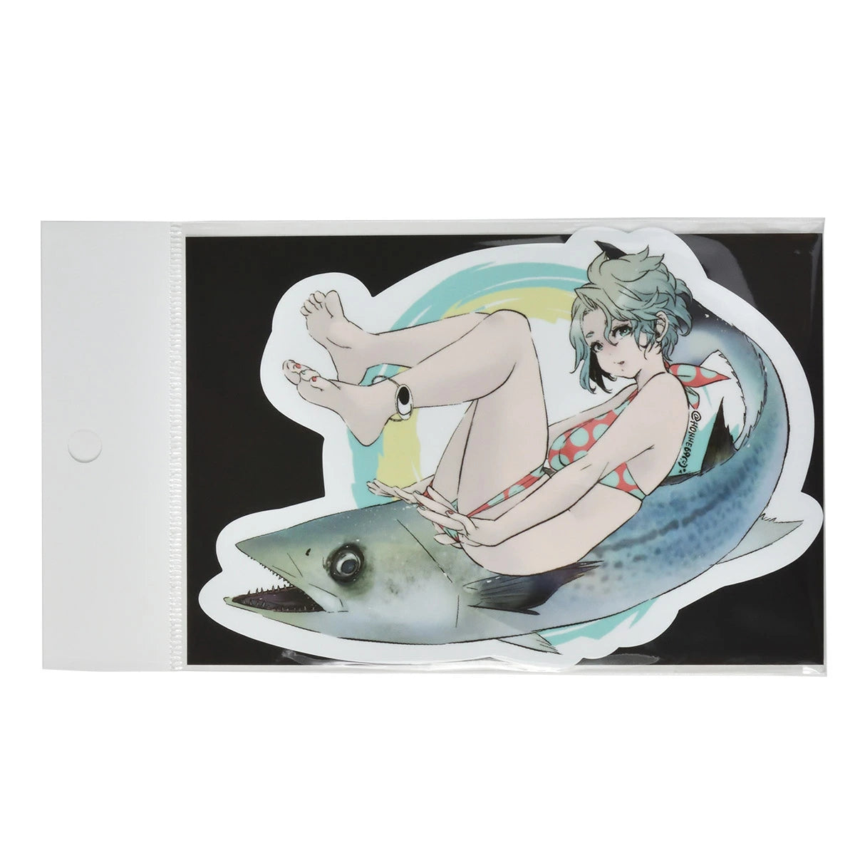 彼女が描く独創的かつ魅力的なキャラクターと魚たちとの今までにない世界観を描いたステッカーです。