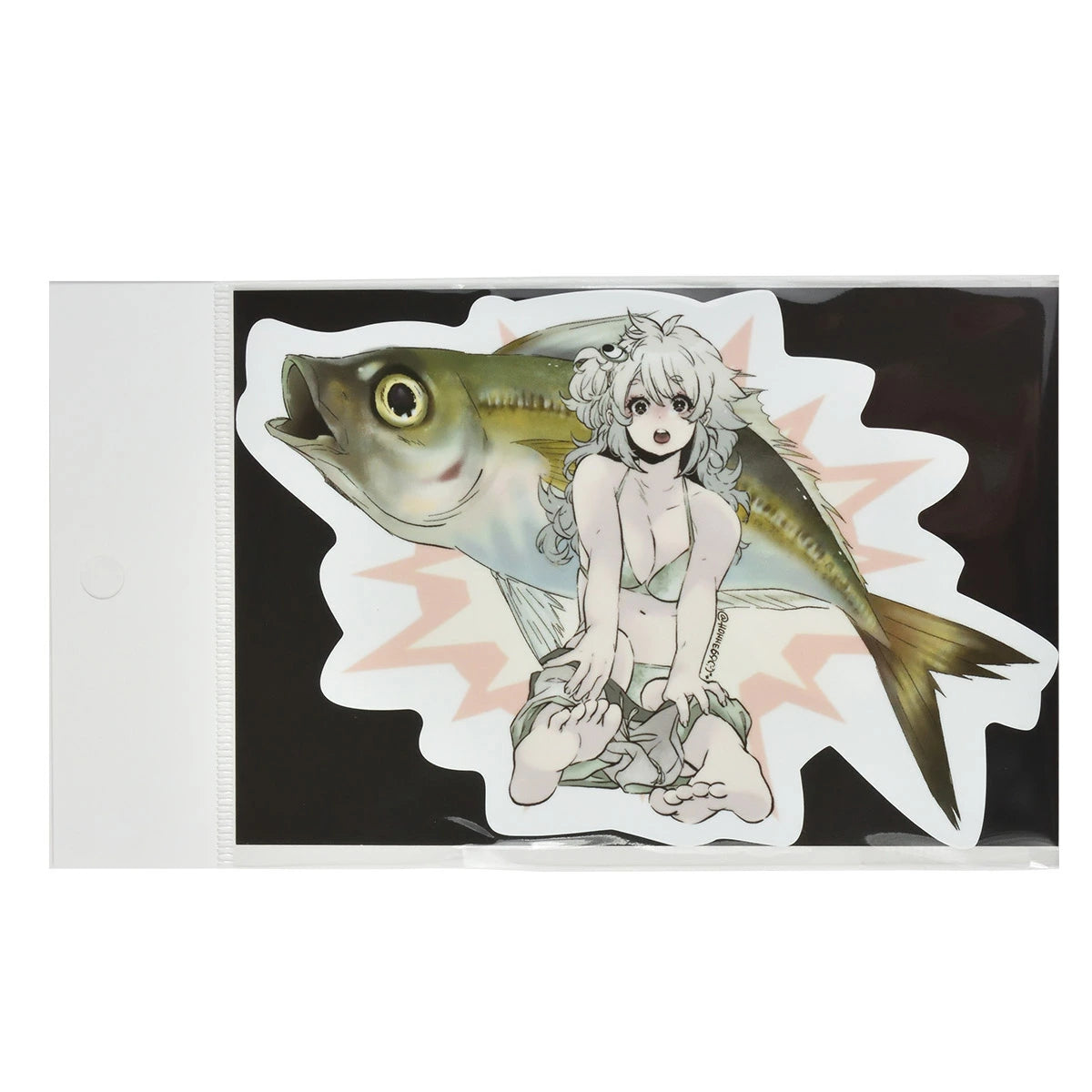 彼女が描く独創的かつ魅力的なキャラクターと魚たちとの今までにない世界観を描いたステッカーです。