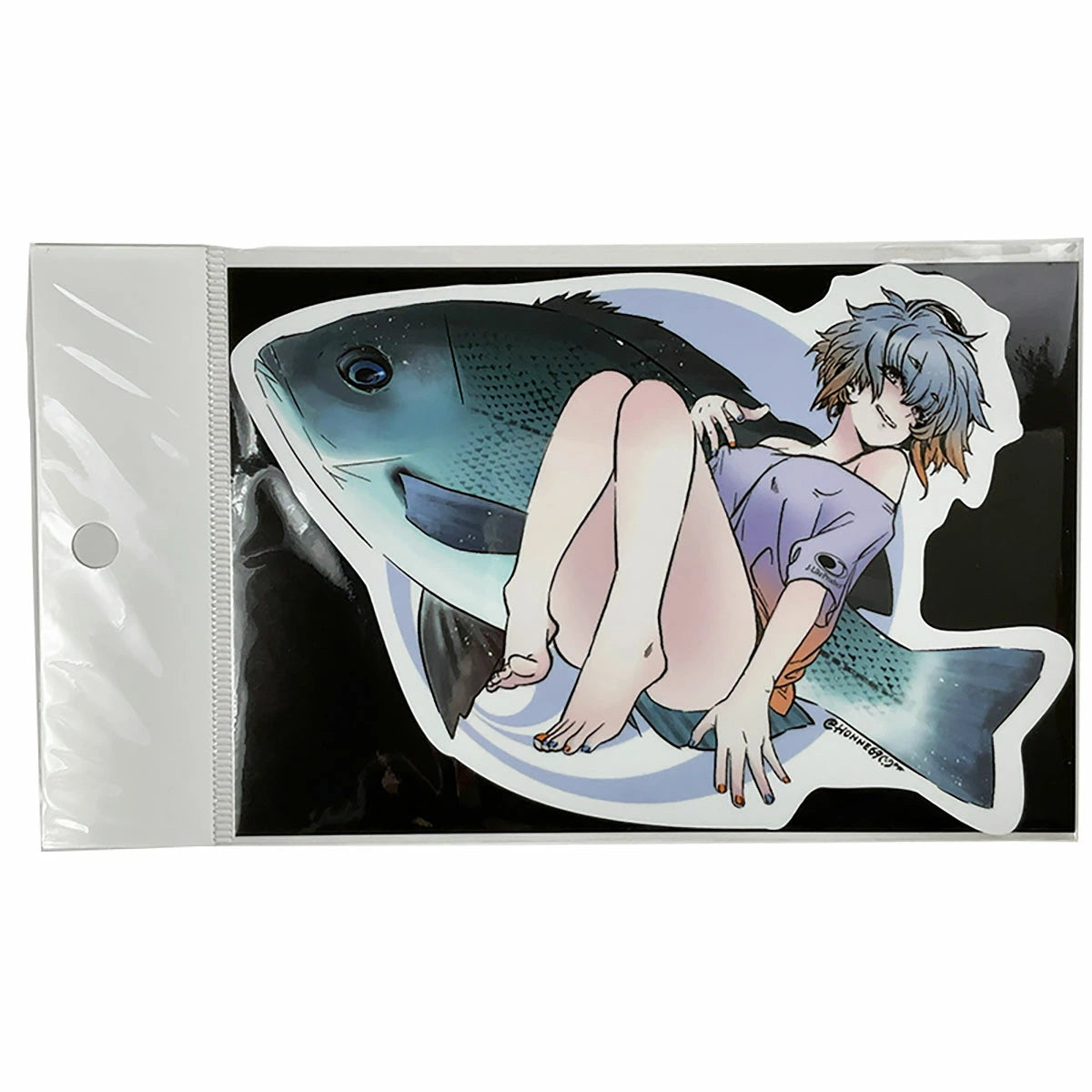 彼女が描く独創的かつ魅力的なキャラクターと魚たちとの今までにない世界観を描いたステッカーです。