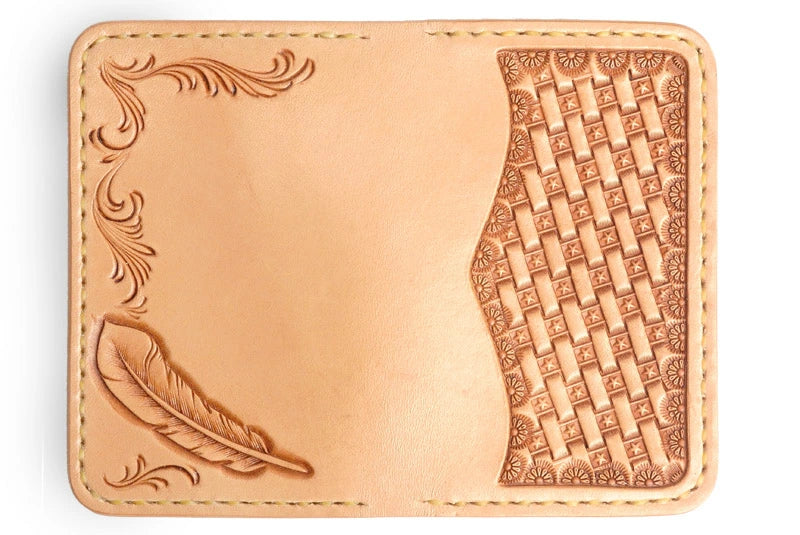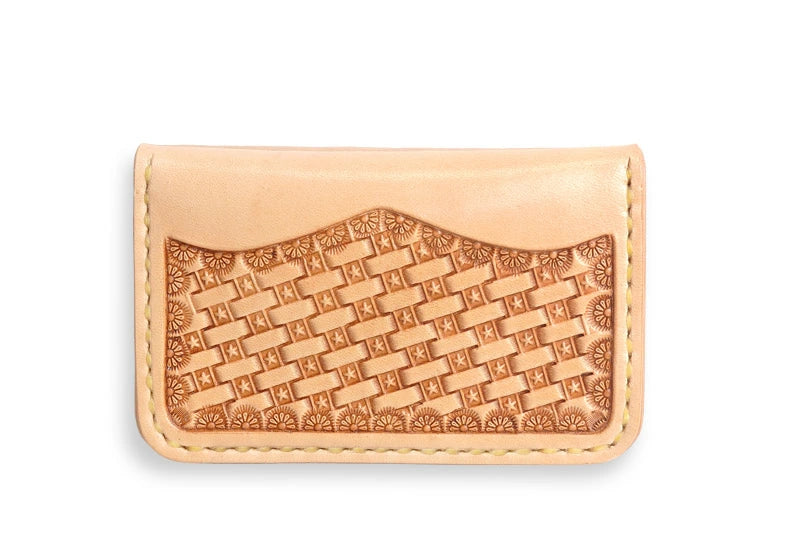サムライクラフト ジョッター付き名刺入れ 角丸 カードケース サドルレザー カットワーク バスケットウィーブスタンピング