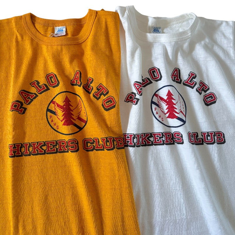 1960〜70年代、カリフォルニア州パロアルト周辺のアウトドアカルチャーにインスパイアされた架空のクラブ「PALO ALTO HIKERS CLUB」。その名を冠した架空ヴィンテージTシャツを、ジョングラッコー流に復刻しました。