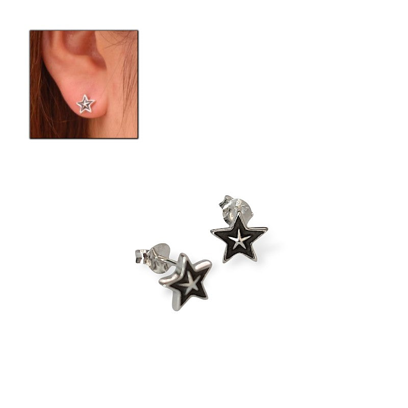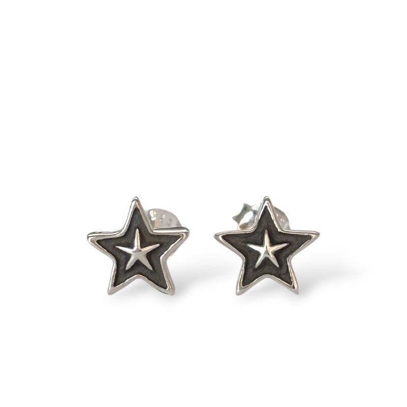 シルバー925でかたどった、シャープな五芒星モチーフのスタッドピアス。