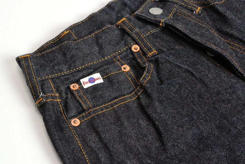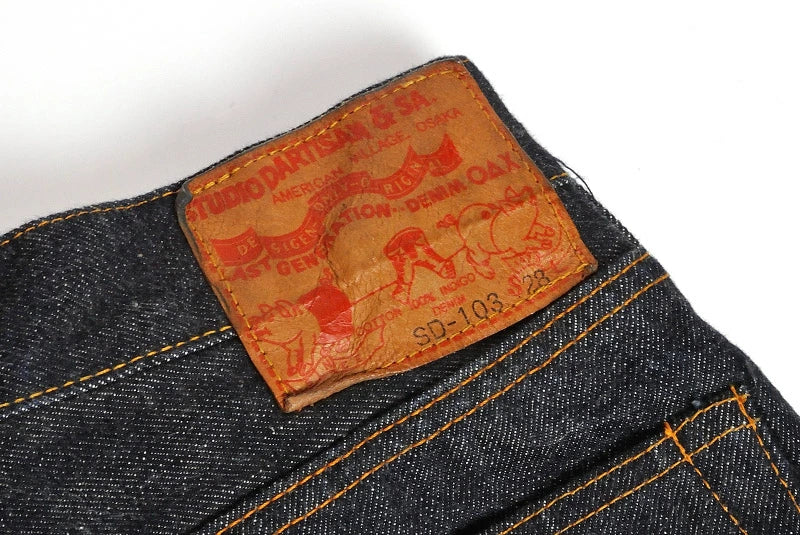ダルチザンの定番ジーンズでの1番人気アイテム。染めの濃さと、生機(キバタ/織りあげたままの生地)特有のザラ感、15ozデニムのしっかりとしたコシが、魅力的な「色落ち」を生むということで、 国内のデニム愛好家は勿論、ここ数年では海外のマニアたちにも一目置かれる、ステュディオ・ダ・ルチザンの定番「SD-100」シリーズ。 その中でも、世代や国境を問わず支持を集めるのが「SD-103 15ozタイトストレート」。細すぎない綺麗なシルエットが魅力です。