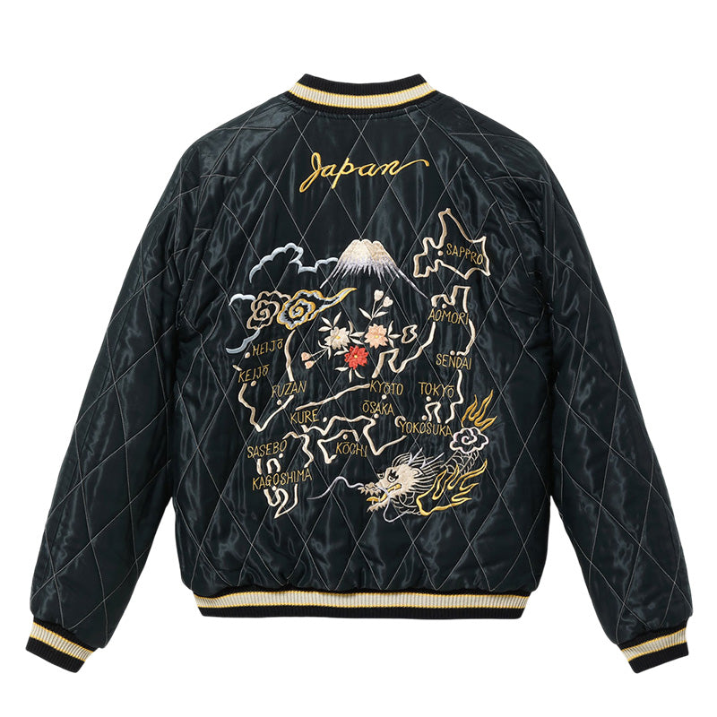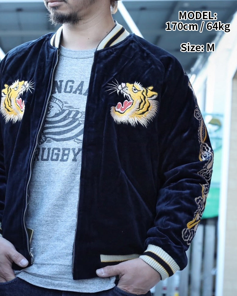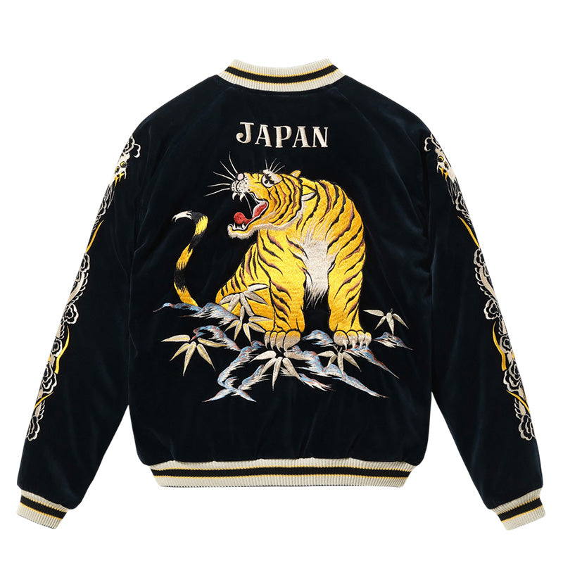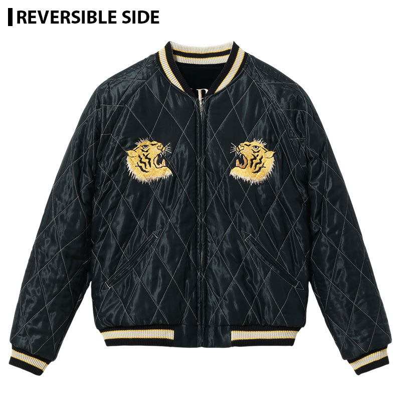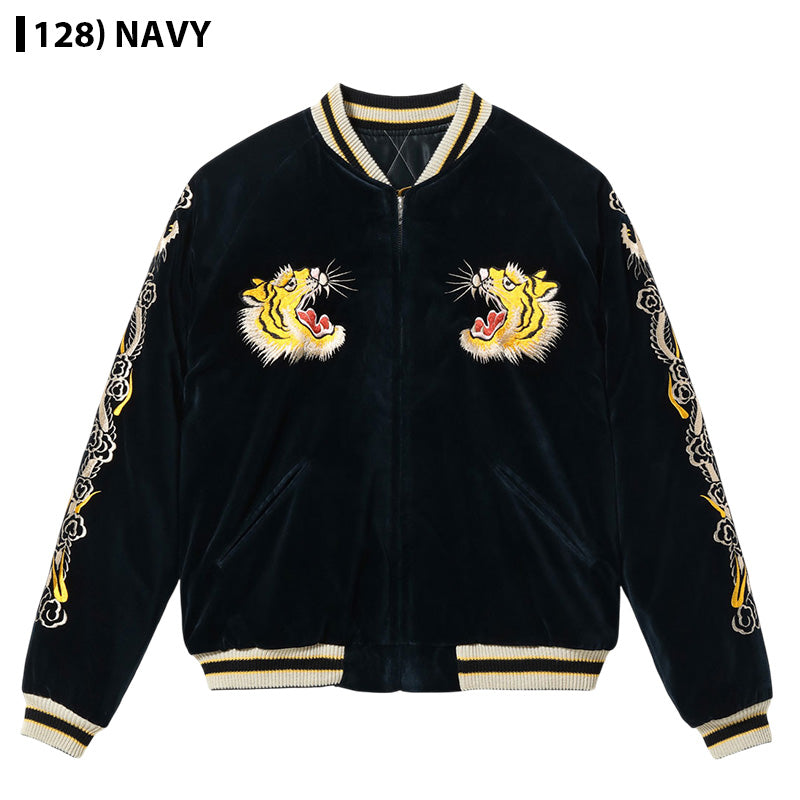 テーラー東洋 スーベニアジャケット スカジャン リバーシブル 別珍 中綿 キルティング タイガー 虎 ジャパンマップ 日本地図 富士山 TT15792-128 ネイビー