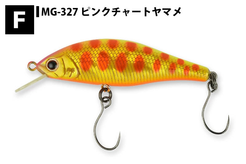 ●カラー:A-51 アバロンアユ 、A-79 アバロンアクアマリン、AL-204 オルガンチャートブラック、HMSS ストリームシャッド、MAL-51 マットアユ、MG-327 ピンクチャートヤマメ、MG-328 ブラック&チャート