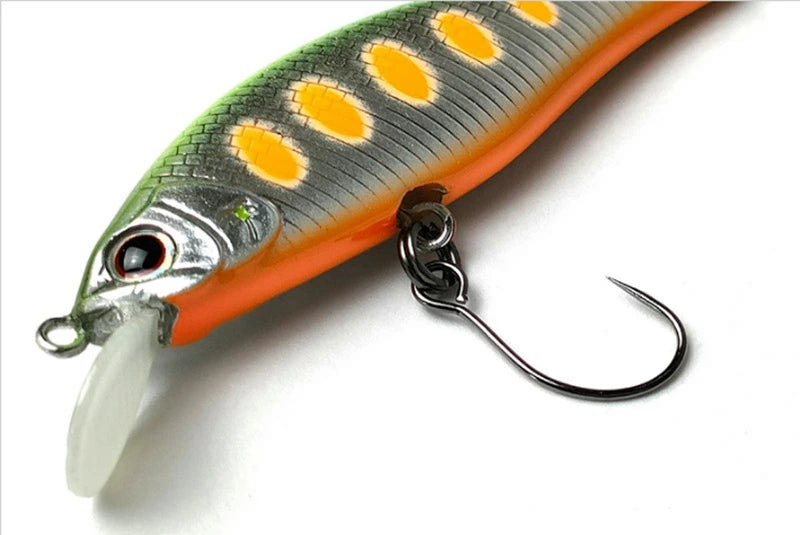 2004年にリリースされヘビーシンキング全盛との中で惜しまれつつ廃盤となったアレキサンドラの原点とも言えるデビューモデルをリメイク。水温の上昇とともに渓流魚の意識は水面付近に集中、フィーディングレーンで狡猾に餌を待つことが多くなります。フラッターシンキングはアップストリームを基本にロッドワークでルアーを操作、軽快に攻め上がり、魅力的な着水音からキレのある連続ヒラ打ちが最大の特徴です。沈下速度の遅さは細流や沢、渇水期のハイプレッシャーな流れはもちろん、水面直下や浅い瀬のレーンを攻めるのに効果を発揮します。流れに乗って自然に舞うように流下させ、自然なバイトを誘発、沈下の早いタイプとレンジを釣り分ける楽しさも得られます。基板リップが強度とレスポンスの良さを発揮、強気なプレゼンテーションが可能になりました。