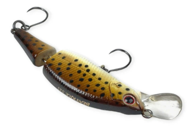 前後にセパレートしたボディが特徴のトゥイッチイング&ドリフトシンキングミノーベアトリス!!フロント側の固定低重心のウエイトポジションが安定した姿勢とアクションを実現。最大の特徴はセパレートされたテール側が抵抗となり移動距離の少ないヒラ打ちが可能なこと、ロッドワークで細かなヒラ打ちさせながらドリフトで目的のレンジを流下させ探る。フォーリング中での不規則な動きの中でのバイトが多いのも特徴。また、フッキングからランディング時まで、ファイト中に発生するバレを軽減する“ANTI HOOK OUT SYSTEM”をベリーのフックアイに登載。オープンでフレキシブルなジョイント方式はよりナチュラルでベイトフィッシュライク、クイックでイレギュラーな動きを演出。トゥイッチングミノーとして新たな世界を切り開きます。