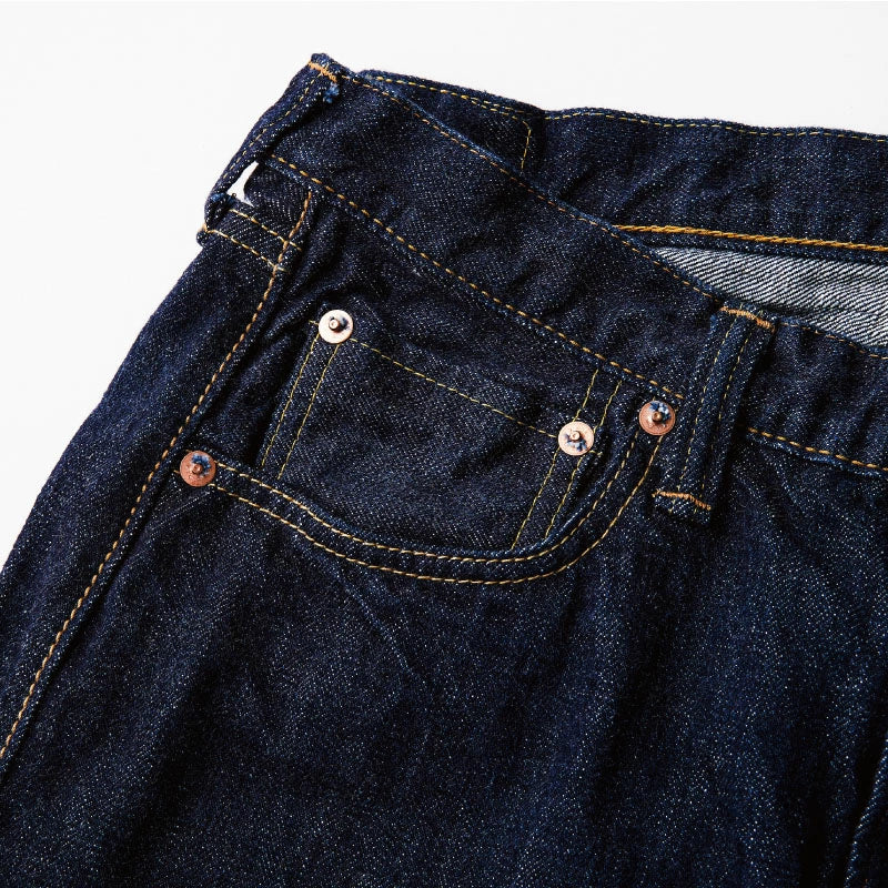 ※当製品は着心地を追求する為、旧式の織機によって作られたデニム地を使用しており、綿が本来持っている伸縮性、弾力性を実現しています。その為、布地の特性上、商品に約1~2センチ程度の個体差が生じる場合がございます。また、サイズ表記につきましても、実物を実際に採寸し、平均値を出したものを記載しております。