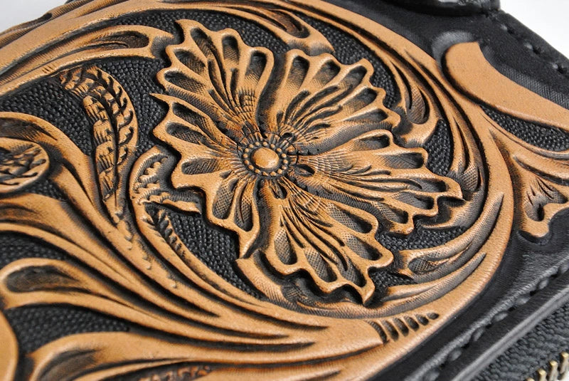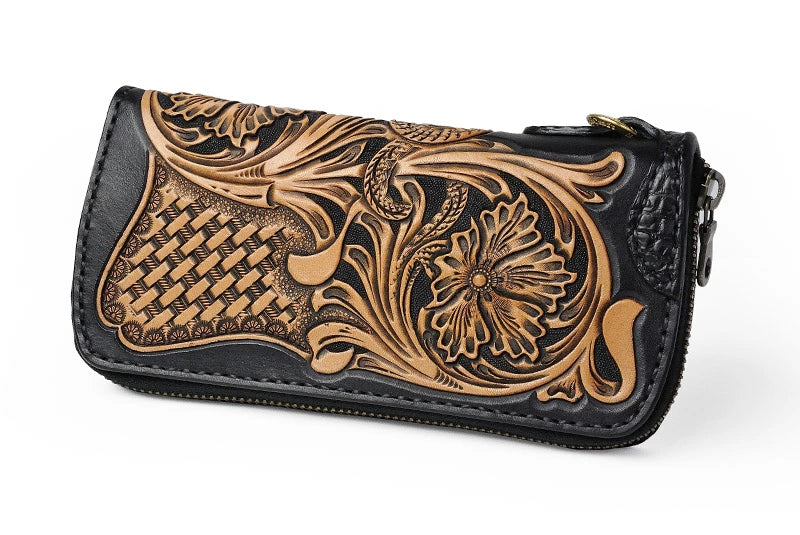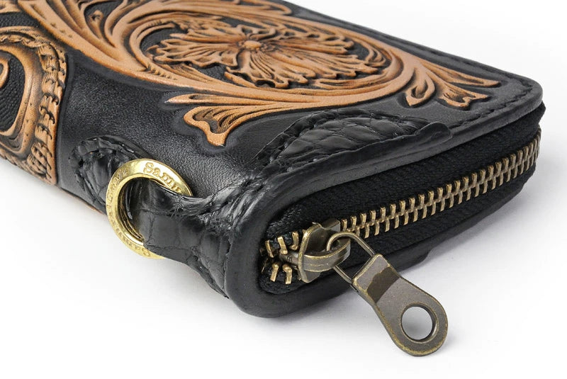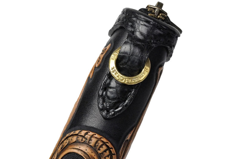 サムライクラフト ラウンドファスナー タイプ2 シェリダンスタイルカービング 黒染 バスケットウィーブ サドルレザー クロコ ウォレットチェーン対応