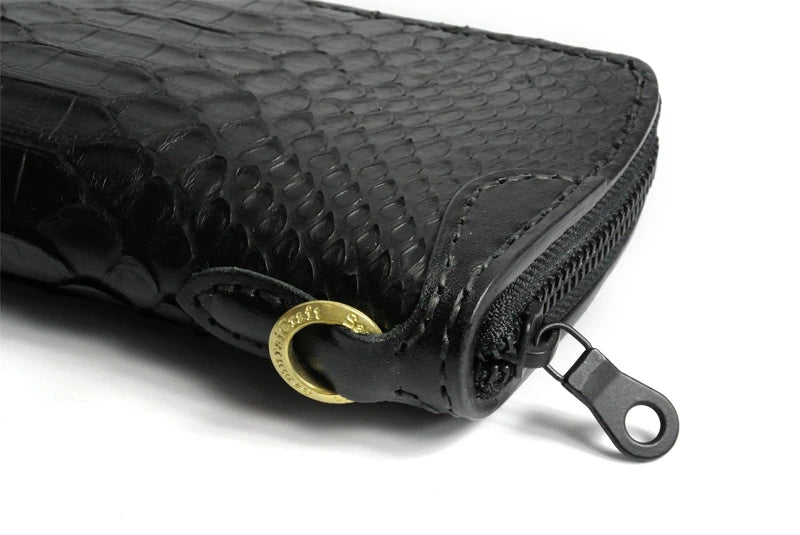 サムライクラフト ラウンドファスナー タイプ2 ダイヤモンドパイソン バックカット マット加工 ブラック ウォレットチェーン対応