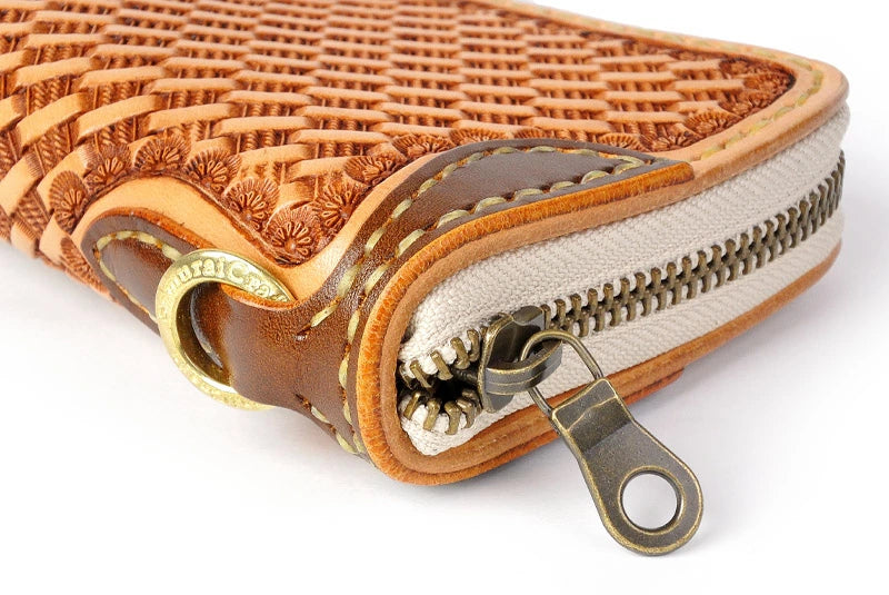 サムライクラフト ラウンドファスナー タイプ2 バスケットウィーブスタンピング タンニング加工 ルガトショルダー ウォレットチェーン対応