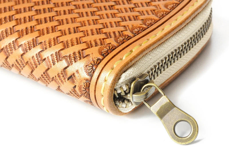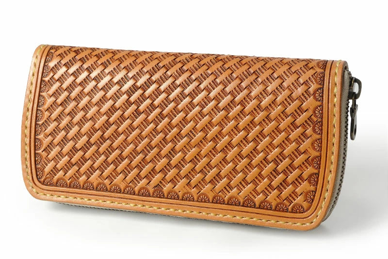 サムライクラフト ラウンドファスナー タイプ2 バスケットウィーブ スタンピング タンニング加工