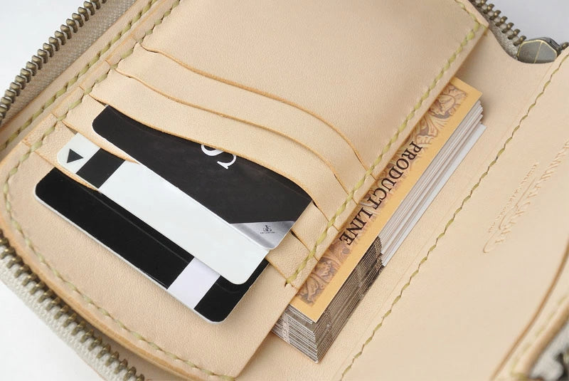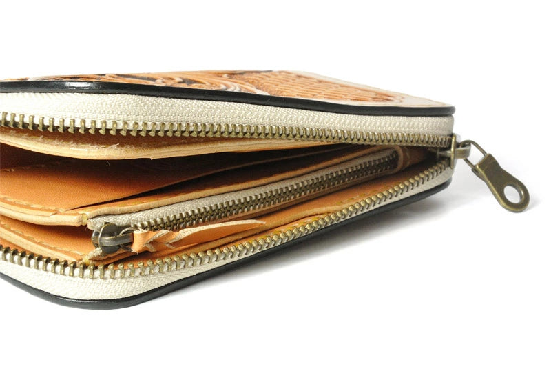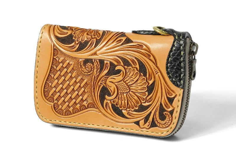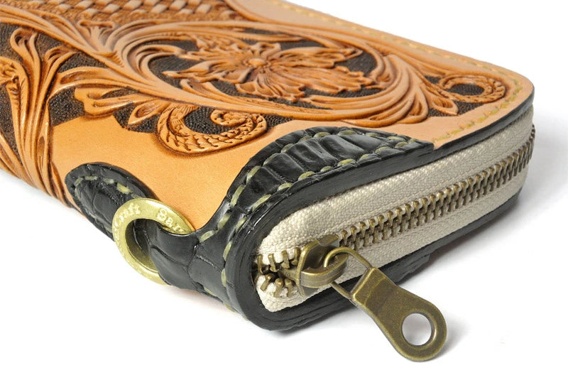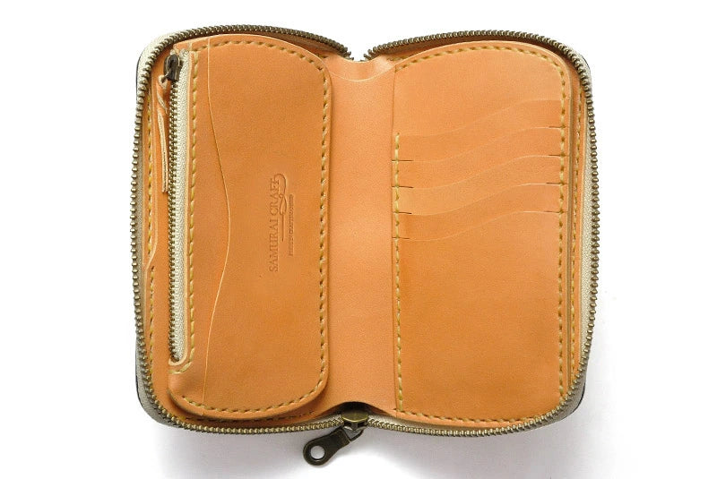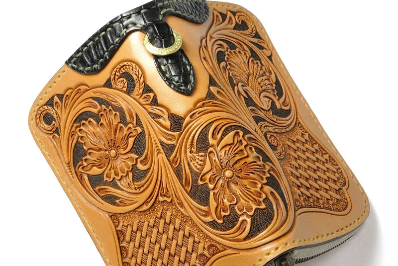 サムライクラフト ラウンドファスナー タイプ3-R シェリダンスタイルカービング バスケットウィーブスタンピング タンニング加工 ウォレットチェーン対応