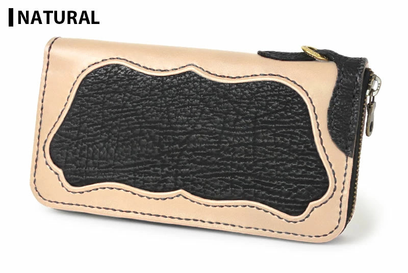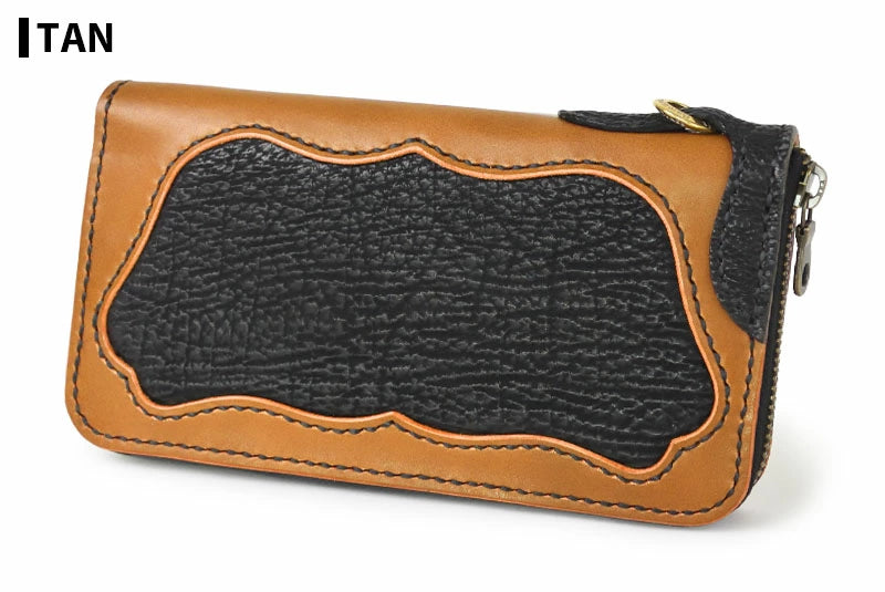 ラウンドファスナー ロングウォレット タイプ1 シャークスキン ダブルインレイ シャーク ウォレットチェーン対応