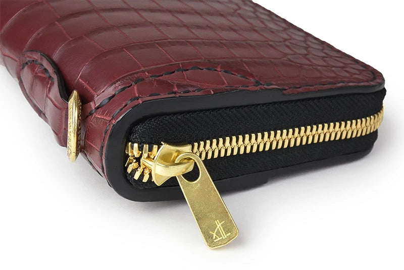 サムライクラフト ラウンドファスナー ロングウォレット タイプ1 スモールクロコダイル ボルドー ウォレットチェーン対応
