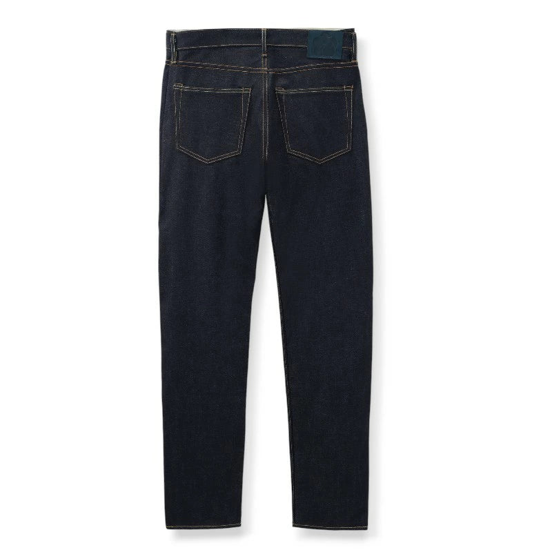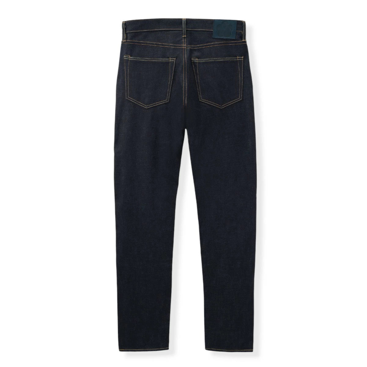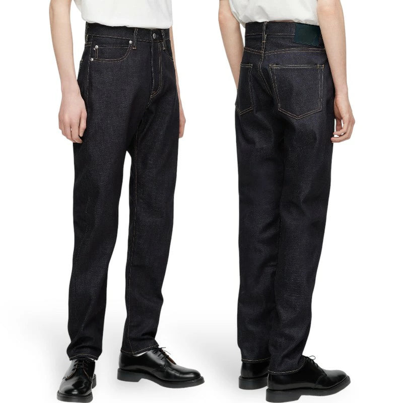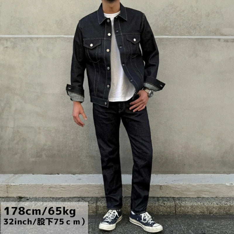 深いインディゴ色と独特な風合いの ”特濃-TOKUNO BLUE” を際立たせるリジット(未洗い)の生地。経糸(たていと)のインディゴ色を際立たせるために、デニムの構成を見直し、緯糸(よこいと)に細い糸を選定。また、洗濯後の縮みを限界まで抑える加工を施すことで、リジット(未洗い)のデメリットを軽減しました。#200は細めのテーパードフィットモデル。太ももはややゆとりを持たせながら、膝下からテーパードをきかせるとで、穿き心地も追求したタイトシルエット。股上はやや浅め。シルエットの美しさと快適な穿き心地を追求したパターンを採用することで実現した、時代に左右されない普遍的なジーンズ。