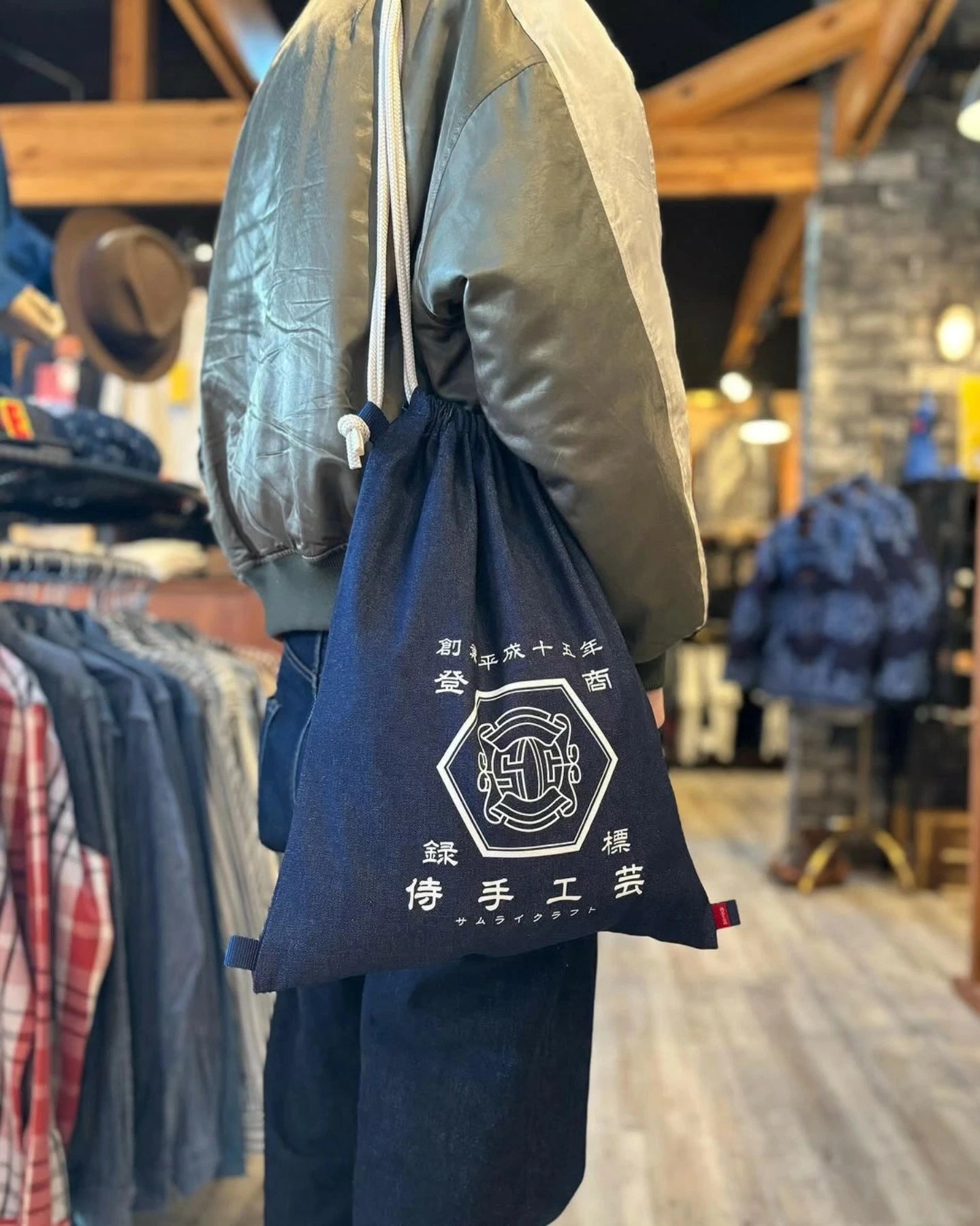 10オンスデニムならではの軽さで、巾着としての開閉もスムーズ、持ち運びにストレスがありません。