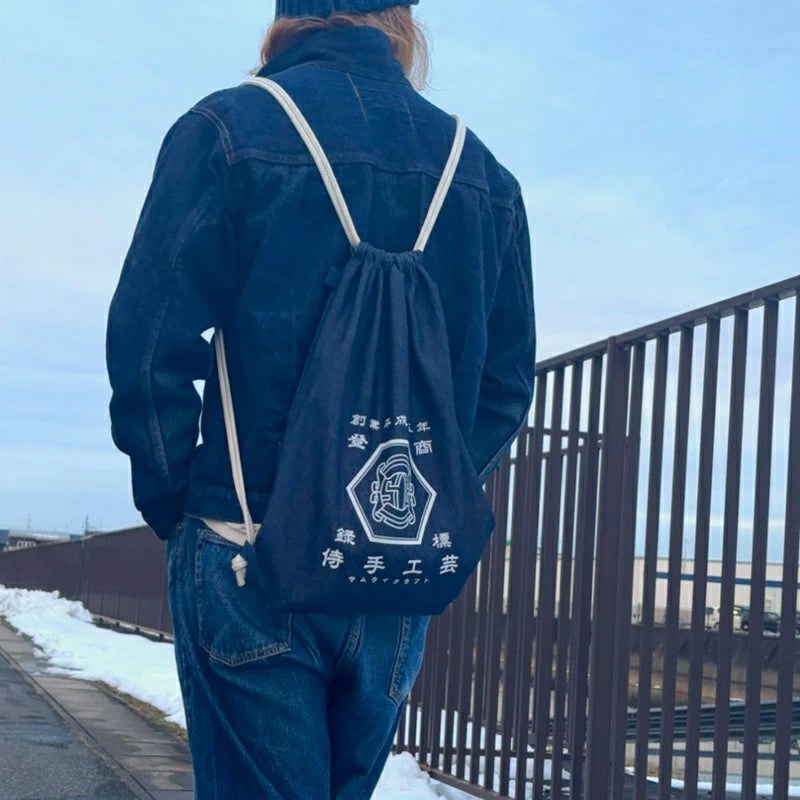 【初売限定20%オフ】 2WAY 10oz デニム ナップサック 侍手工芸 赤ピス 商標登録デザイン