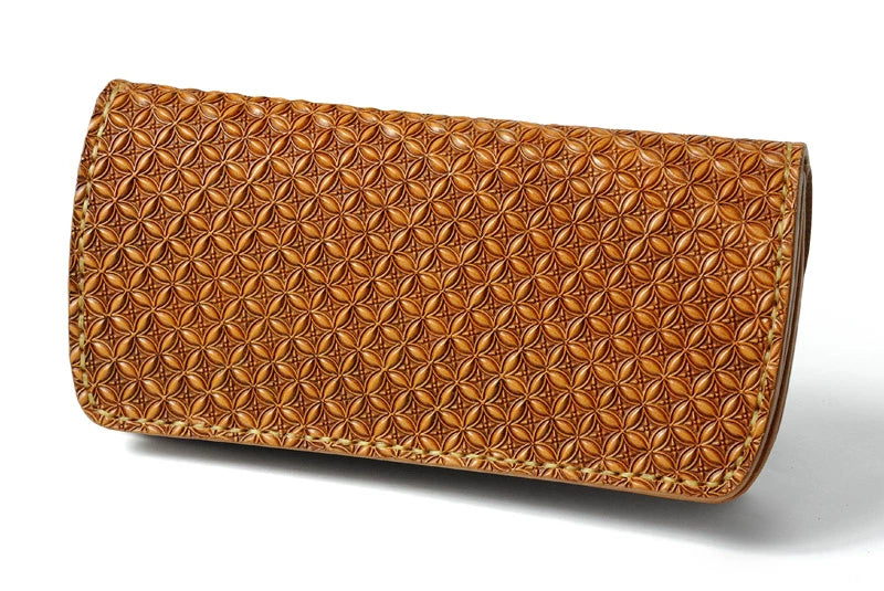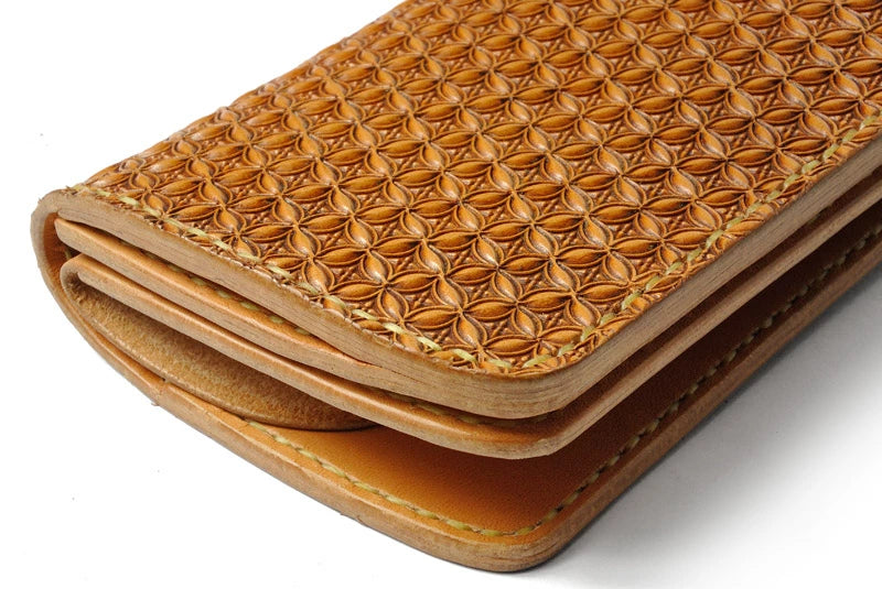 サムライクラフト スリムロングウォレット A-2 フラップレス カスタムモデル バスケットウィーブスタンピング ジオメトリック ハーマンオーク ツーリングレザー サドルレザー