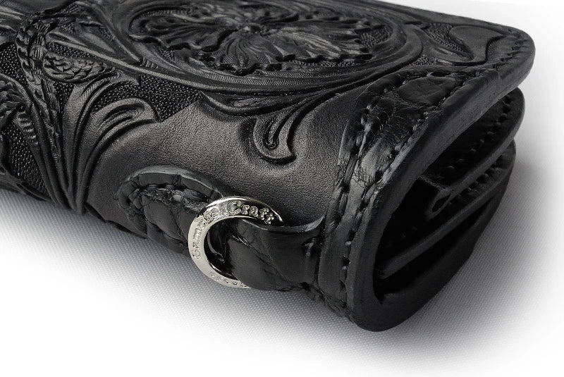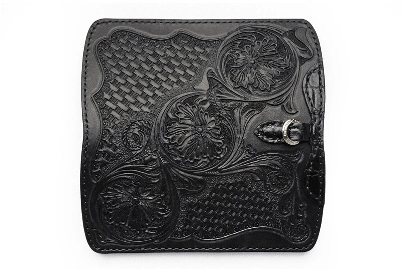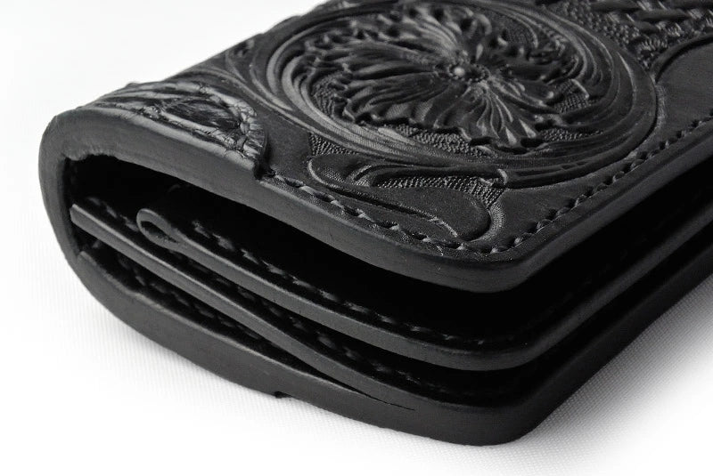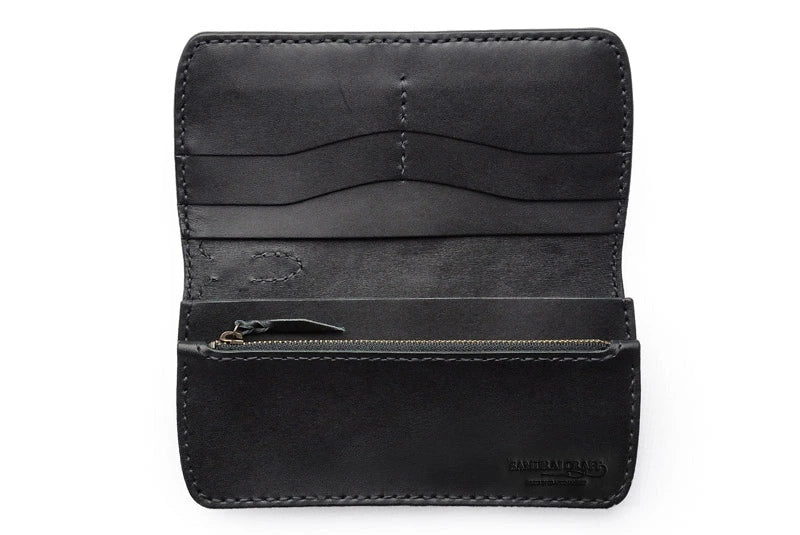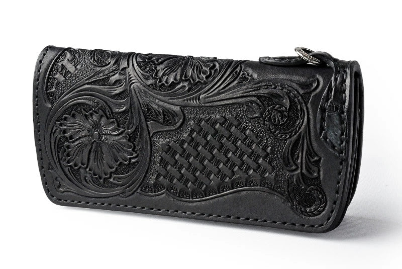 サムライクラフト スリムロングウォレット A-2 フラップレス シェリダンスタイルカービング 補強あり 黒染 サドルレザー