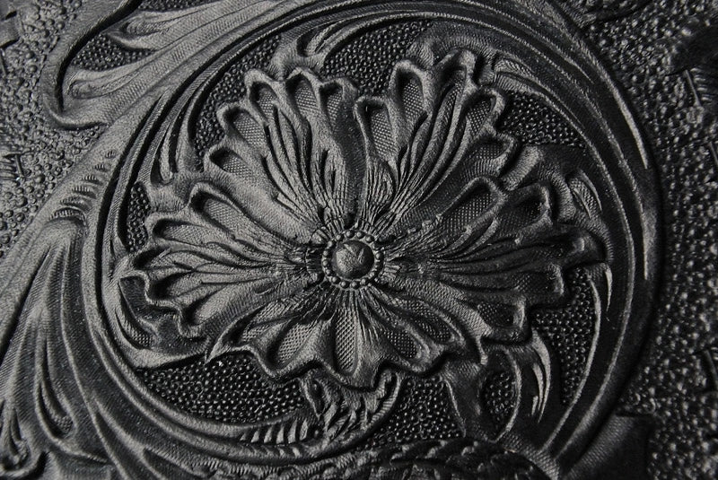 ※表面ツーリングレザーはカービング後ブラックに染色してあります。