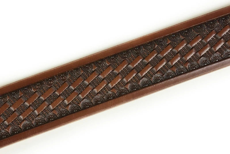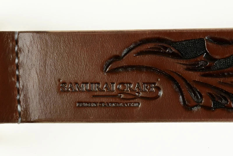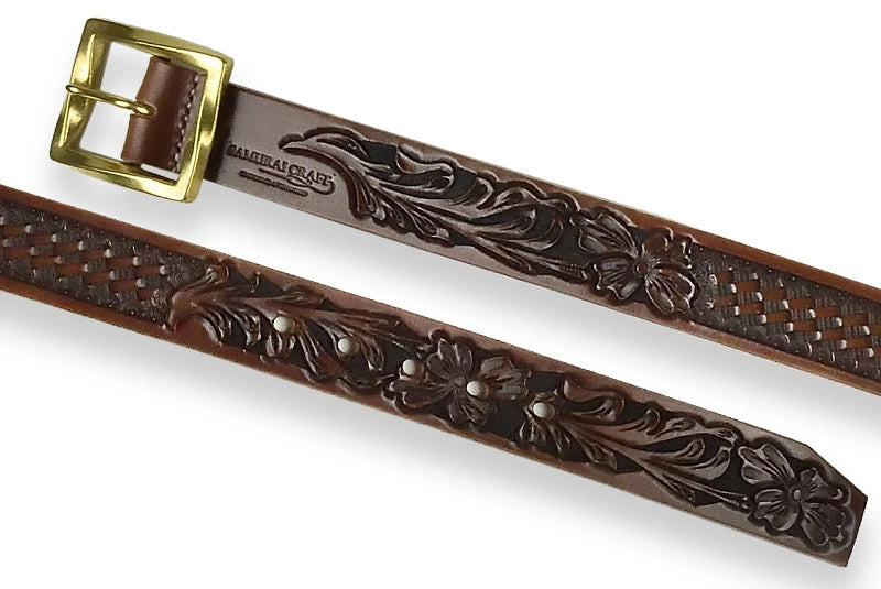 サムライクラフト BL-1 レザーベルト タイプ1 ベンズレザー シェリダンスタイルカービング×バスケットウィーブスタンピング ブラウン