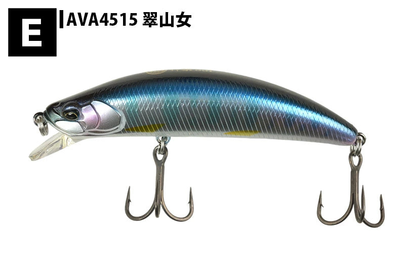 トラウトルアーでは太めとなるボディは、水深のあるトロ瀬・大渕などが得意なシチュエーションとなり、弱い流れでもしっかりとルアーが動き、アピールするボディバランスになっております。