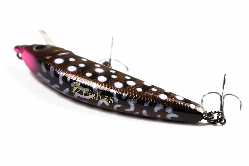 数々の実績を残してきたiFishが生まれ変わって新登場。 より使いやすく、よりタイトに流れを制するために進化を遂げました。 固定ウエイトにより泳ぎやトゥイッチ時のアクションのばらつきを抑え、 アングラーのティップ操作を素直に反映します。 ウォブンロールアクションで強い流れの中でも飛びだしづらくチャンスを逃しません。 また、平らなボディ形状の生み出す平打ちアクションでトラウトを誘惑します。