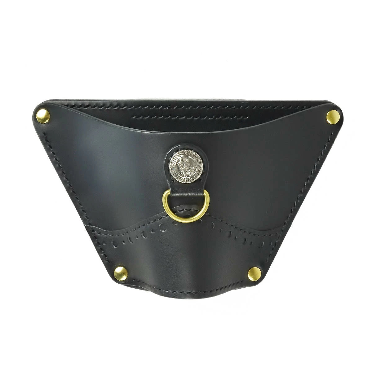 ランディングネット(釣り用の網)を収納するネットホルスター。ベルトに通して腰に装着するタイプ。厚みがあり型崩れのしないタフなボディ。メダリオンオーバーレイにより強度とデザイン性をプラスした。前面にDカンが付いているので、リーシュコードで繋いでおけば紛失防止にもなる。