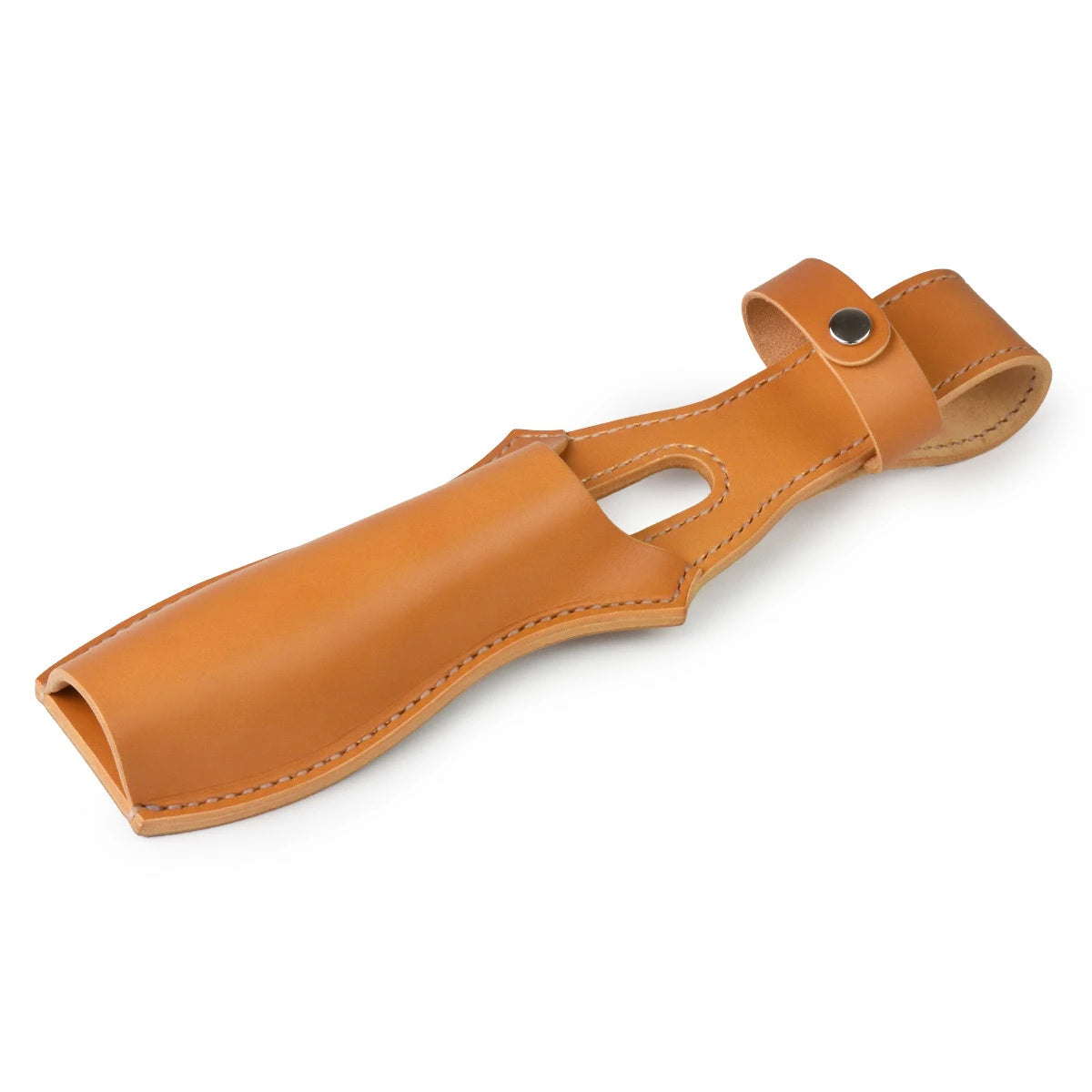 ベイトリール専用のレザーロッドホルダー。ロッドを止めるフラップは着脱が簡単なボタン留め。