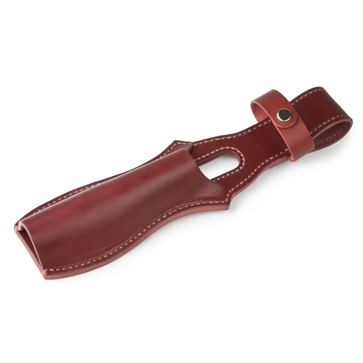 ベイトリール専用のレザーロッドホルダー。ロッドを止めるフラップは着脱が簡単なボタン留め。