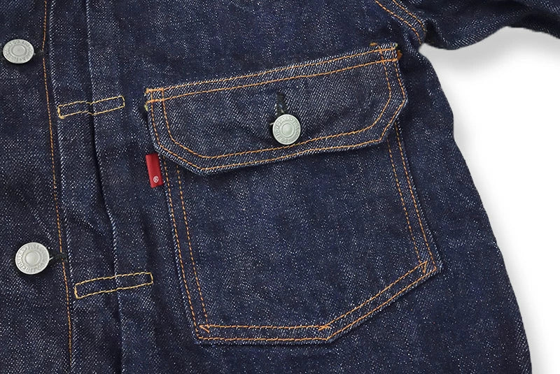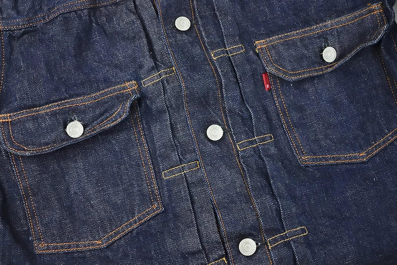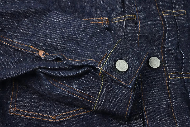 適度なゆとり感に1stとは違いバックシンチを廃止にし、ボタンでアジャスト出来る仕様にすることでよりワークウエアとしての機能性を高めております。生地にはジーンズと同じく定番デニム13.7ozデニムを採用しております。その為、伸縮性、吸水性/撥水性にも優れており春先のデニムONデニムアイテムとして。また、冬場のインナージャケットとしても年間を通して活躍してくれる一枚となっております。