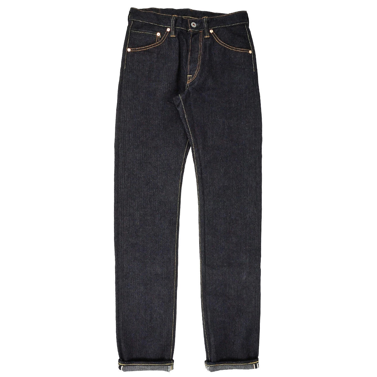綿から染色はもちろん、織機の細かい設定にまでこだわり抜いたgraphzeroの16ozセルビッチデニム。タイトストレートで太ももから裾まですっきりとテーパードをかけたスリムシルエット。