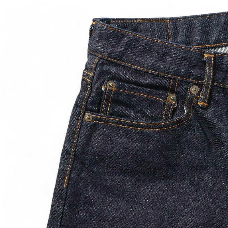 深めの股上とやや太めのシルエットのクラシックストレートモデル。
